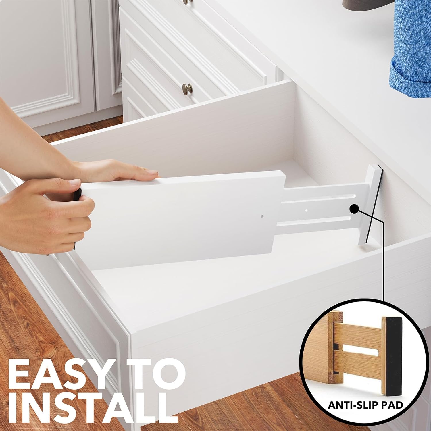 SpaceAid Bamboo Dresser Drawer Dividers 6 Pack, 4.65“ High Adjustable 12.5“-17” Drawer Organizers, Expandable Organization for Clothing, Clothes, Dressers, White