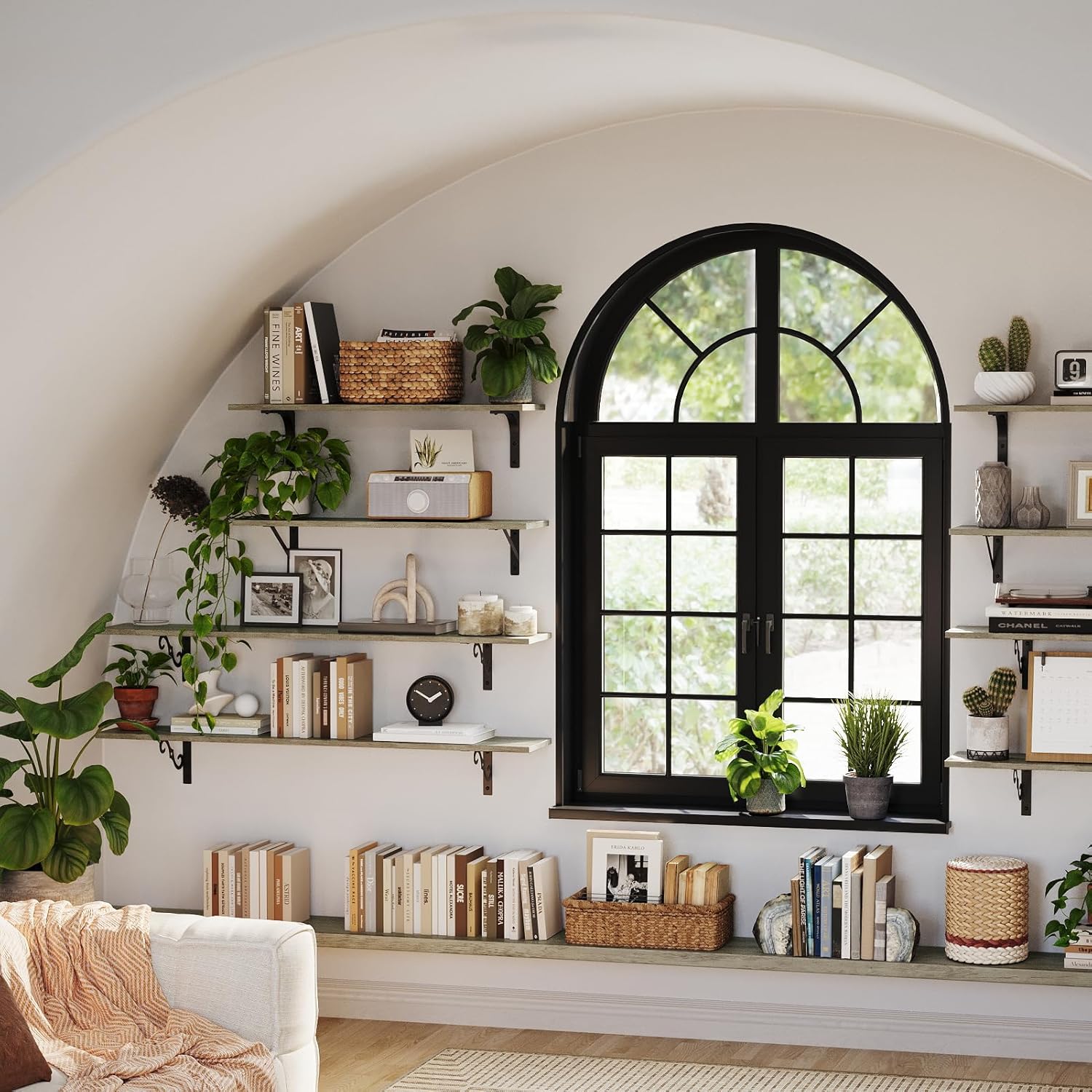 - 【Age with Grace in Any Setting】Turn your any wall into a real eye-catcher space with these large wall shelving. Long and wide enough for plates, glasses, books, legos, collection or towels etc. Make a statement in entryway, bathroom, balcony, study, kitchen, laundry, bar area, pantry