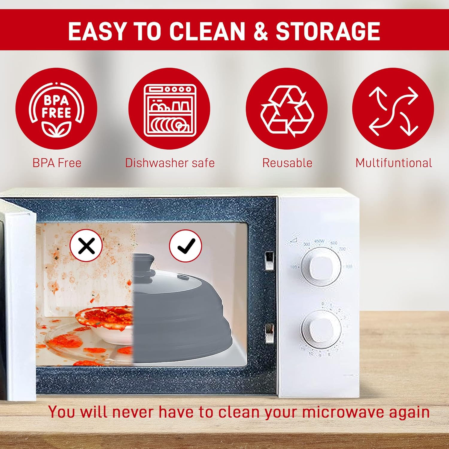 - 🧽 EASY TO CLEAN AND STORE: To remove splatters, rinse this food cover for the microwave oven with water. Use some dish soap to deal with stubborn residues. Then, collapse the sides and store it on a rack.