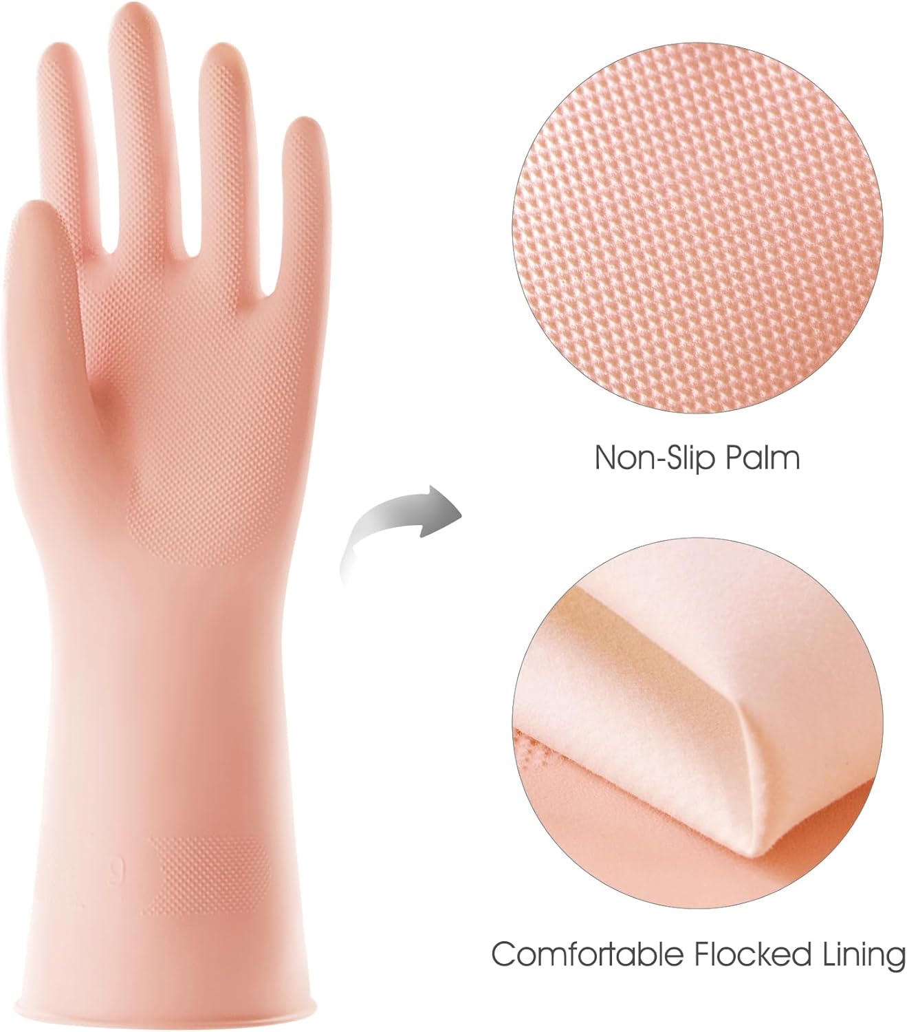 - Non-Slip Grip for Maximum Control: Featuring granules on the palms and fingers, these rubber gloves provide a reliable anti-slip grip, giving you full control in dry, damp, and wet conditions. Whether you're dishwashing, cleaning, or handling liquids, you can trust these gloves to keep your tasks secure and efficient.