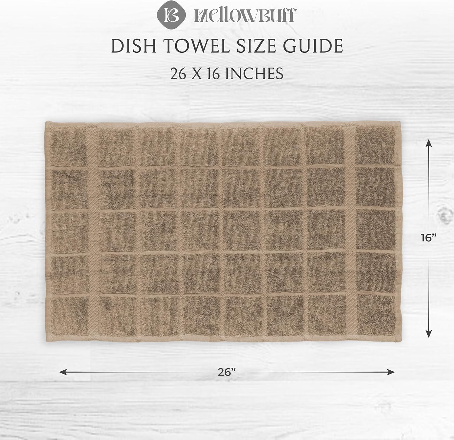 - Mellow buff dishcloths and dishtowels are made of 100% cotton with supreme quality and exquisite workmanship. Designs are simple, perfect size and it will give the feeling of being home by co-ordinating with most kitchen decor.