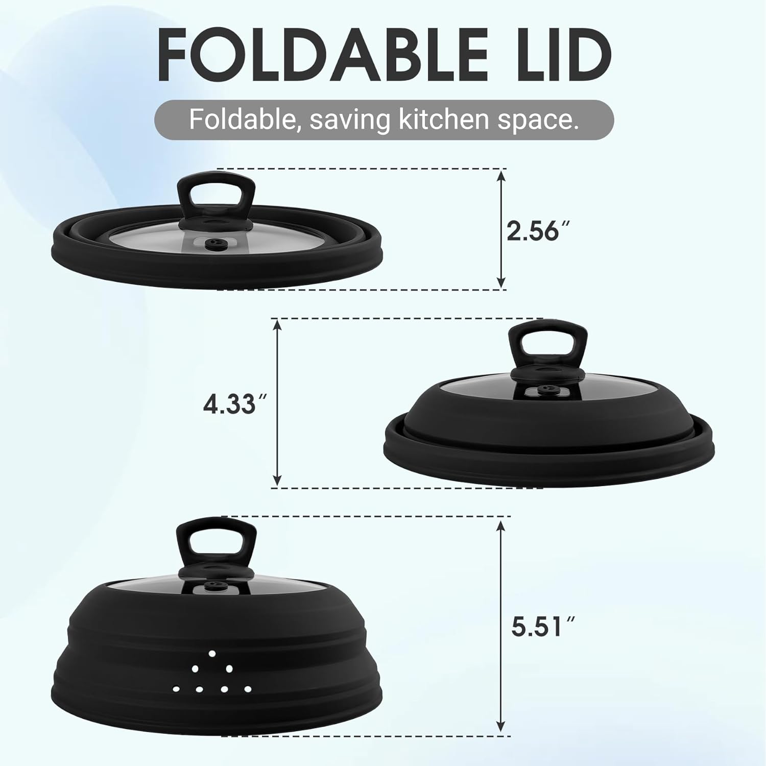 Microwave Splatter Cover Glass 10.5 Inch Microwave Cover for Food with Handle Collapsible Silicone Microwave Cover with Steam Vent for Pot Plate Bowl (Black)