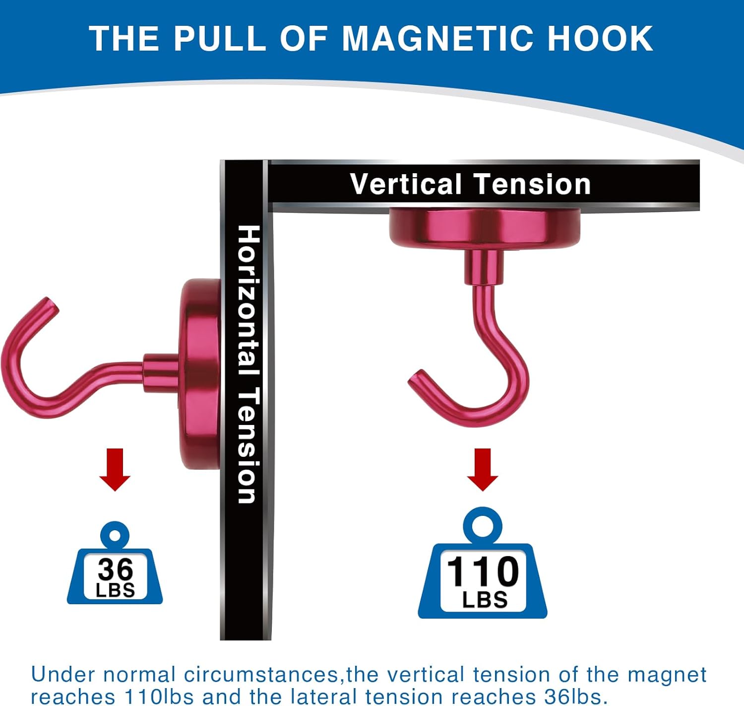 LOVIMAG Cruise Ship Essentials, 110Lbs Cruise Door Magnets, Red Cruise Magnetic Hooks, Magnetic Hooks Heavy Duty for Hanging Celling, Grill, Refrigerator Kitchen-6 Pack