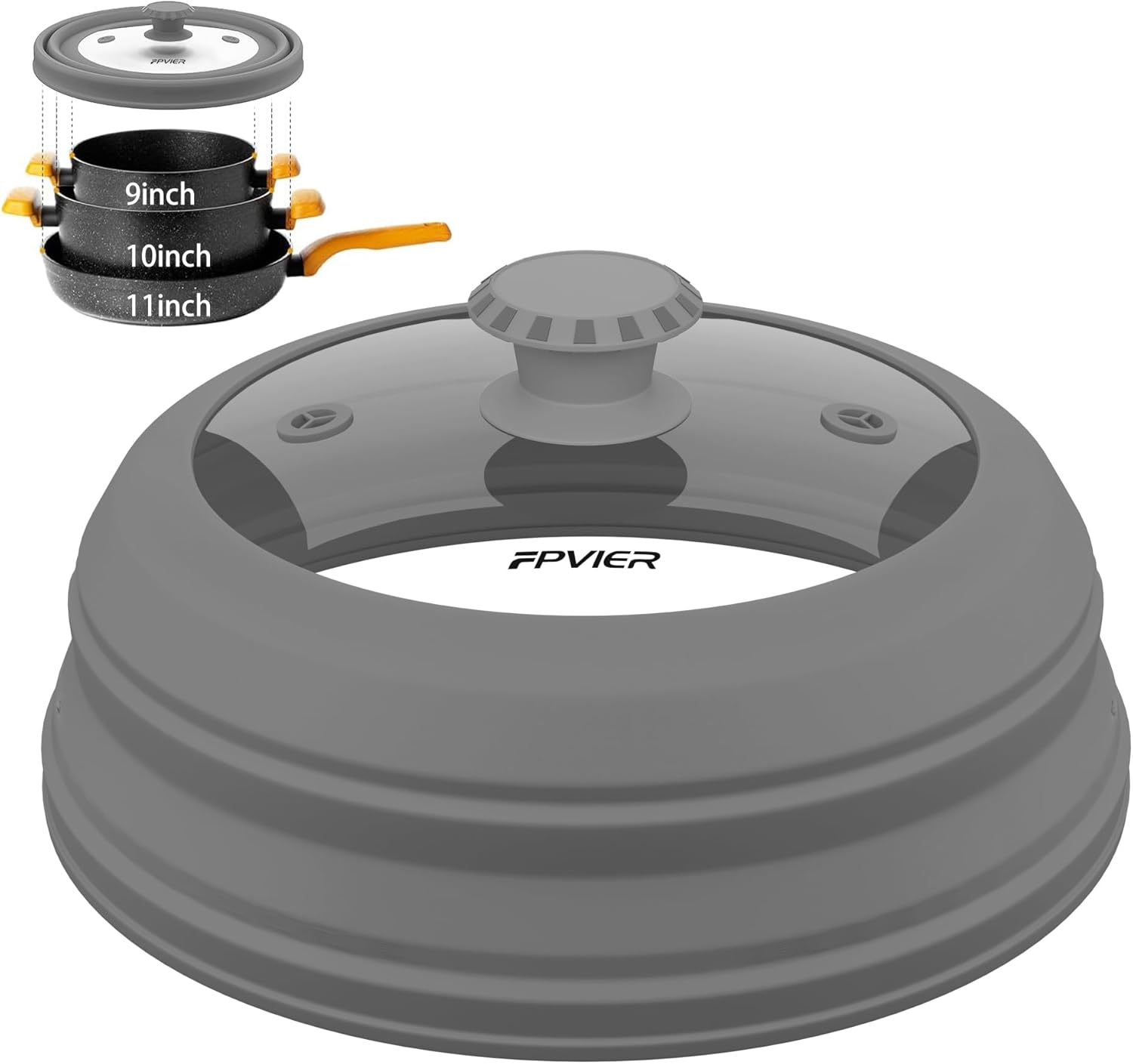 - 【Patent Collapsible Design】Experience the excellence with FPVIER's Patent Collapsible Silicone Dome, the diameter is 11.8 inch (29.97 cm), uniquely crafted to cover plates & bowls from 6"-11" with ease, providing a big surprise in the compact storage form.