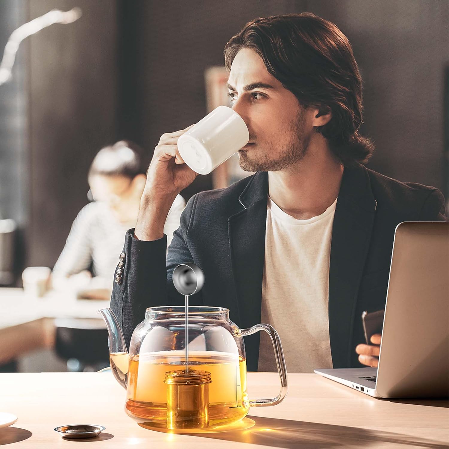 - Spoon and lid are designed in one/ UNIQUE SPOON LID 2 IN 1 DESIGN: The threaded lid of the tea strainer cleverly extends a long handle, there can be used as a spoon. You don't need to buy an extra tea spoon. Saves your money and more convenient to use. What's more, the size of the spoon fits perfectly with the size of the cup of the tea strainer, so that no more tea leaves will be exposed.