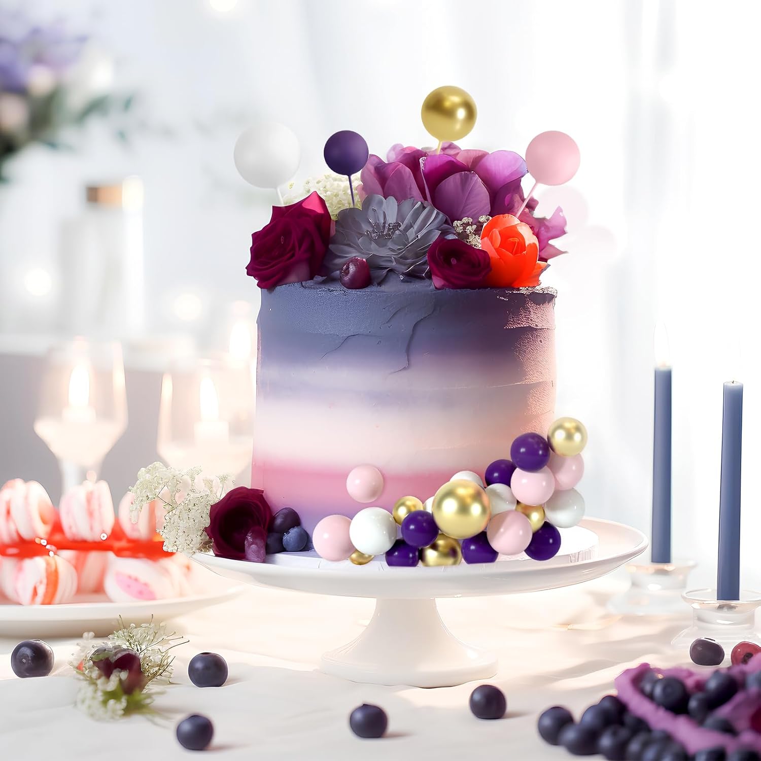 48 Pcs Balls Cake Topper Decorations Balloon Cupcake Toppers Foam Cake Topper Balls Cake Balls Decorations for Birthday Party Wedding Anniversary Cake Decorating (Pink, Purple, White, Gold)
