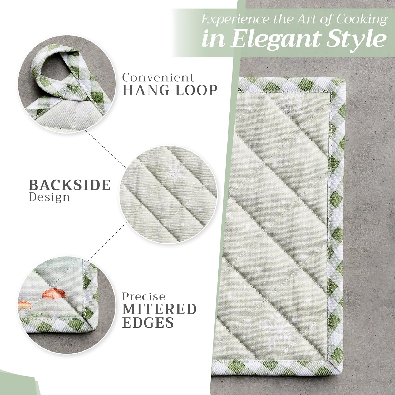 - Premium Quality: Crafted from quilted 100% cotton, this heat resistant oven mitt and pot holder set offers comfort, flexibility, and protection from hot cookware. Ideal cotton oven mitts for daily kitchen use and cooking safety