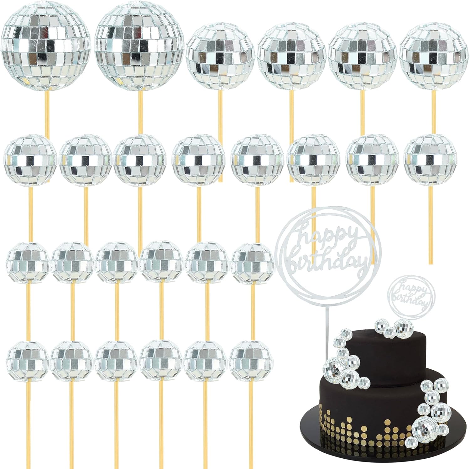 BEISHIDA 27 PCS Disco Ball Cake Topper 1970s Disco Decorations Mirror Ball Cupcake Toppers for Disco Theme Party 70s 80s Disco Party Birthday Cake Anniversary Wedding Cake Decorations