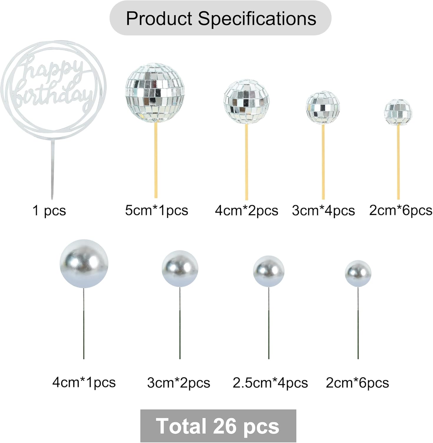 - 【Package】You will get 13 x silver disco balls cake toppers in different size, 13 x silver balls cake toppers in different size, and 1 x happy birthday cake topper, very exquisite and super valuable.