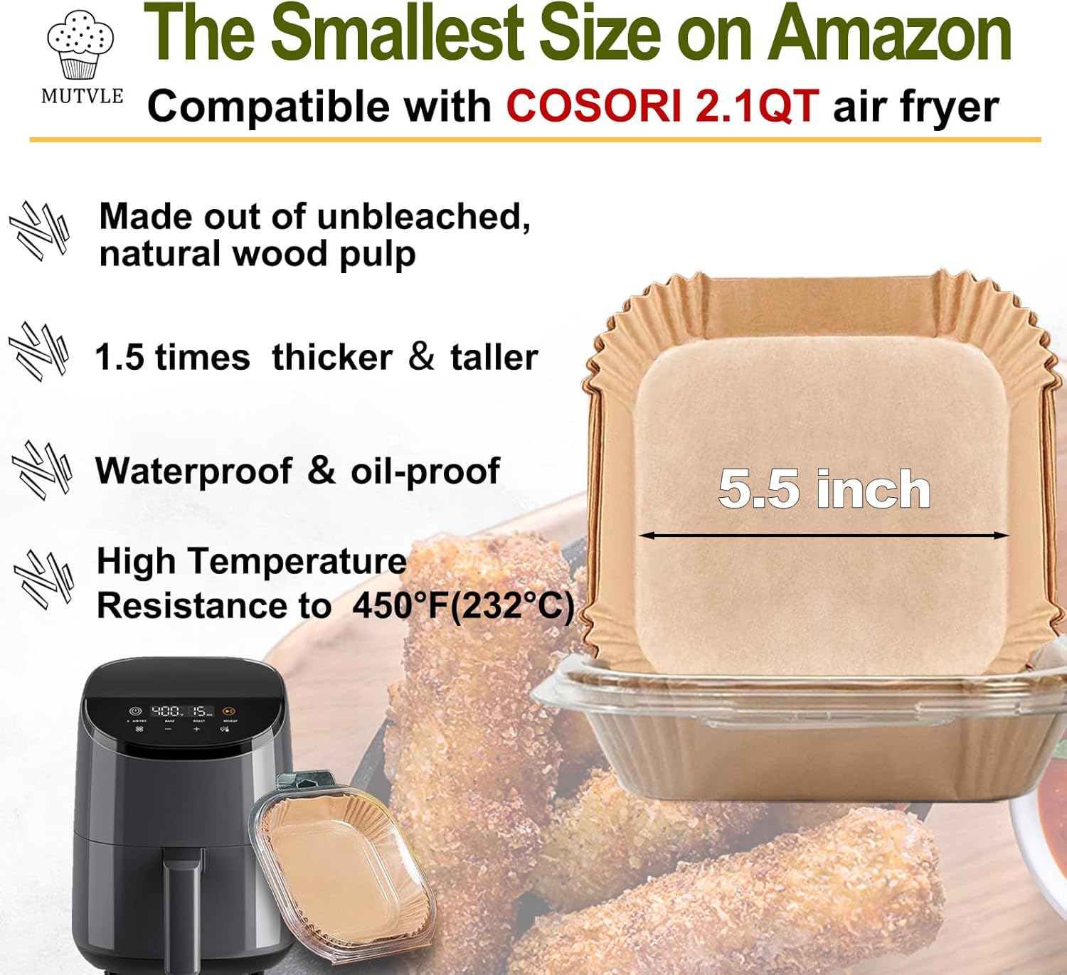 - 【Info】Small Size. 125 PCS. Square shape. Bottom wide 5.5 inch, high 1.8 inches, perfects for 1-3 quart air fryer.