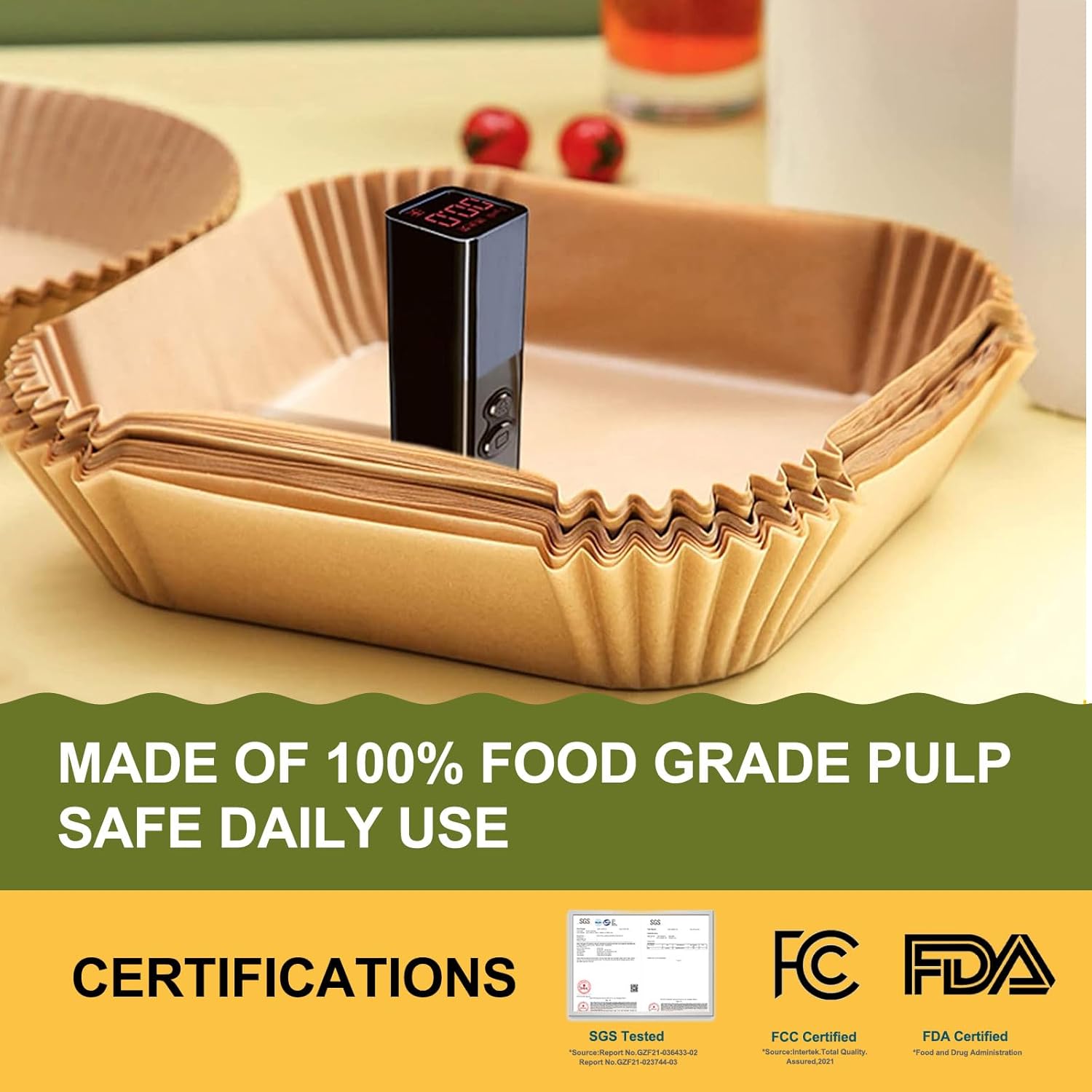 - 【Easy to Use】The small air fryer parchment paper liner for most small air fryer are designed with a square bowl shape, which do not need to tear, fold, cut, nor bend, and you can directly put it in when you are ready to cook. Its heightened edge 4.5cm can protect the side of fryers and prevent food from sticking to them.
