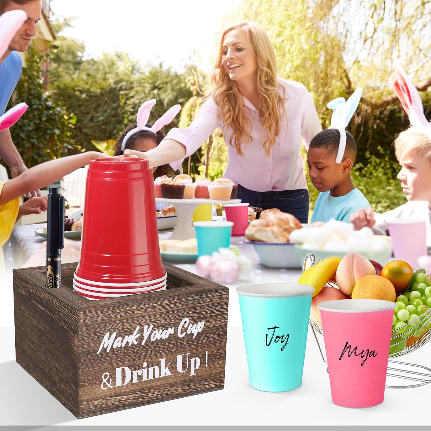 - 【Perfect Hostess Party Cup Holder 】When you like to host different kinds of themed party like birthday,pool,wedding,BBQ,family parties,get together,holiday party,Labor Day,Thanksgiving Day,Halloween,Christmas,everyone can easily write their names on their cups and reuse them at parties,everyone made a comment on the party cup holder at party. Everyone loved it as much as hostess,also leaving it on the kitchen bar counter for everyday use.