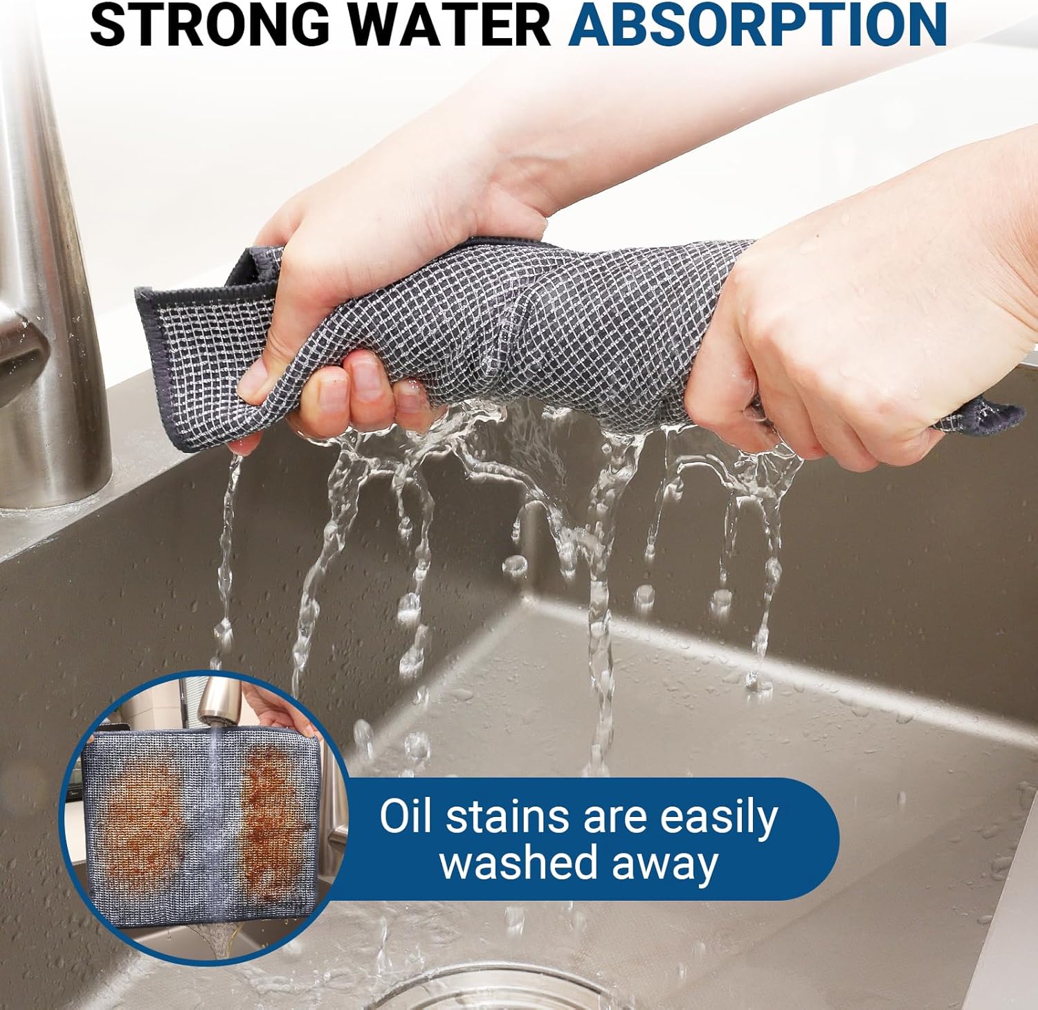 - Material Upgrading: Our wire dishwashing rag Made from 80% chemical fiber materialsand 61% polyamide of a premium microfiber with a highly absorbent, streak-free and lint-free features. It has the ability to pick up and lock dirt, dust, moisture into the fibers, cleaning and drying the applied surface. Use a wire rag on both sides to clean stubborn stains