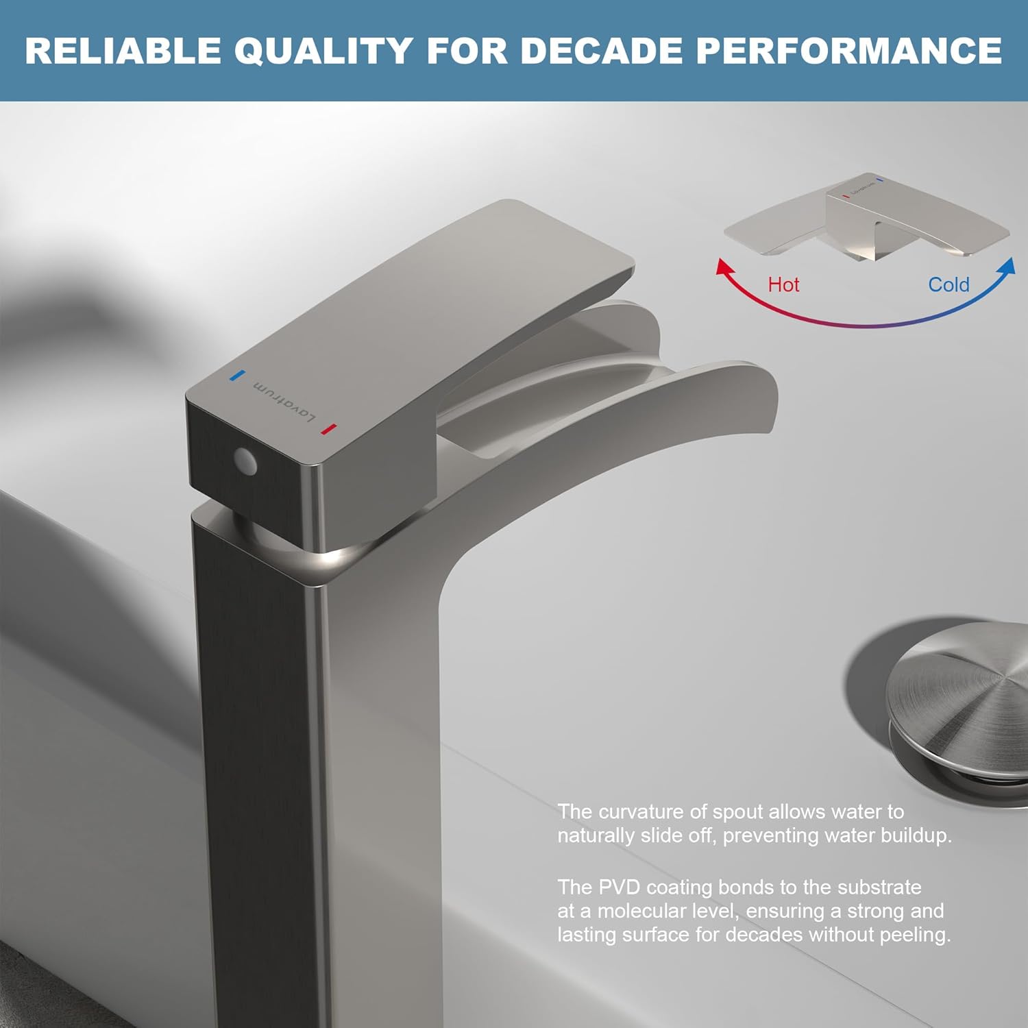 Bathroom Faucet Tall Vessel Waterfall Faucet Brushed Nickel Deck Mount Single Handle Lavatory with Water Supply Line