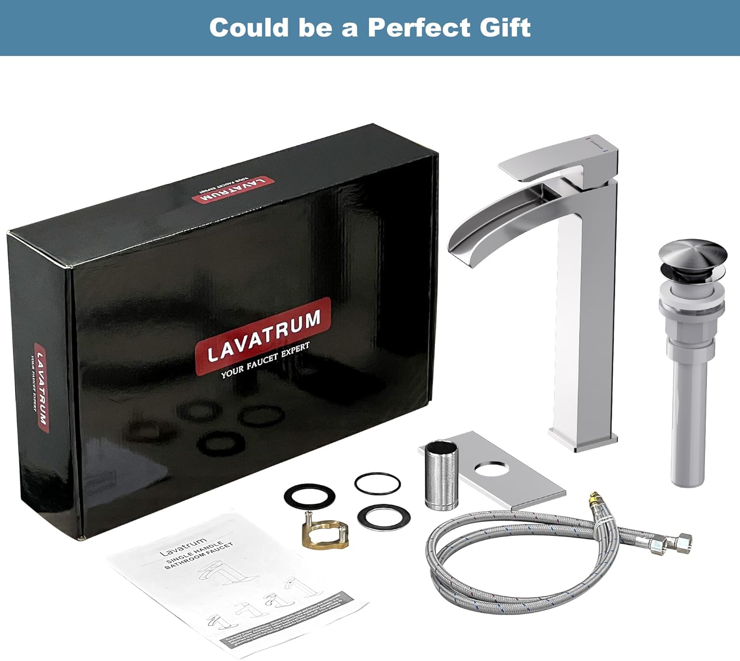 - 【Wide Waterfall Spout for a Unique Water Flow】 The generously wide waterfall spout delivers a natural, eye-catching water flow that adds a touch of elegance and luxury to your daily routine, enhancing your water use experience with its visually appealing design.