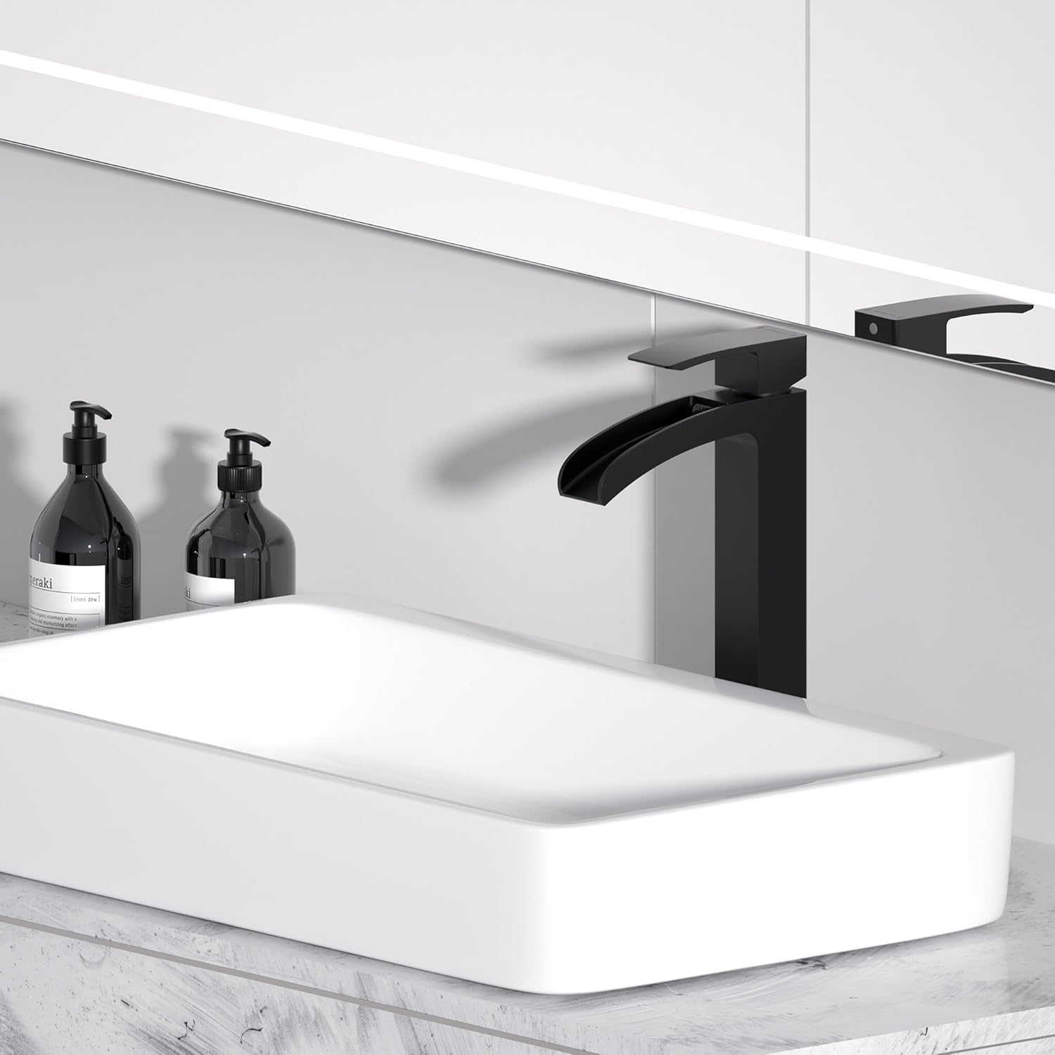 - 【Wide Waterfall Spout for a Unique Water Flow】 The generously wide waterfall spout delivers a natural, eye-catching water flow that adds a touch of elegance and luxury to your daily routine, enhancing your water use experience with its visually appealing design.