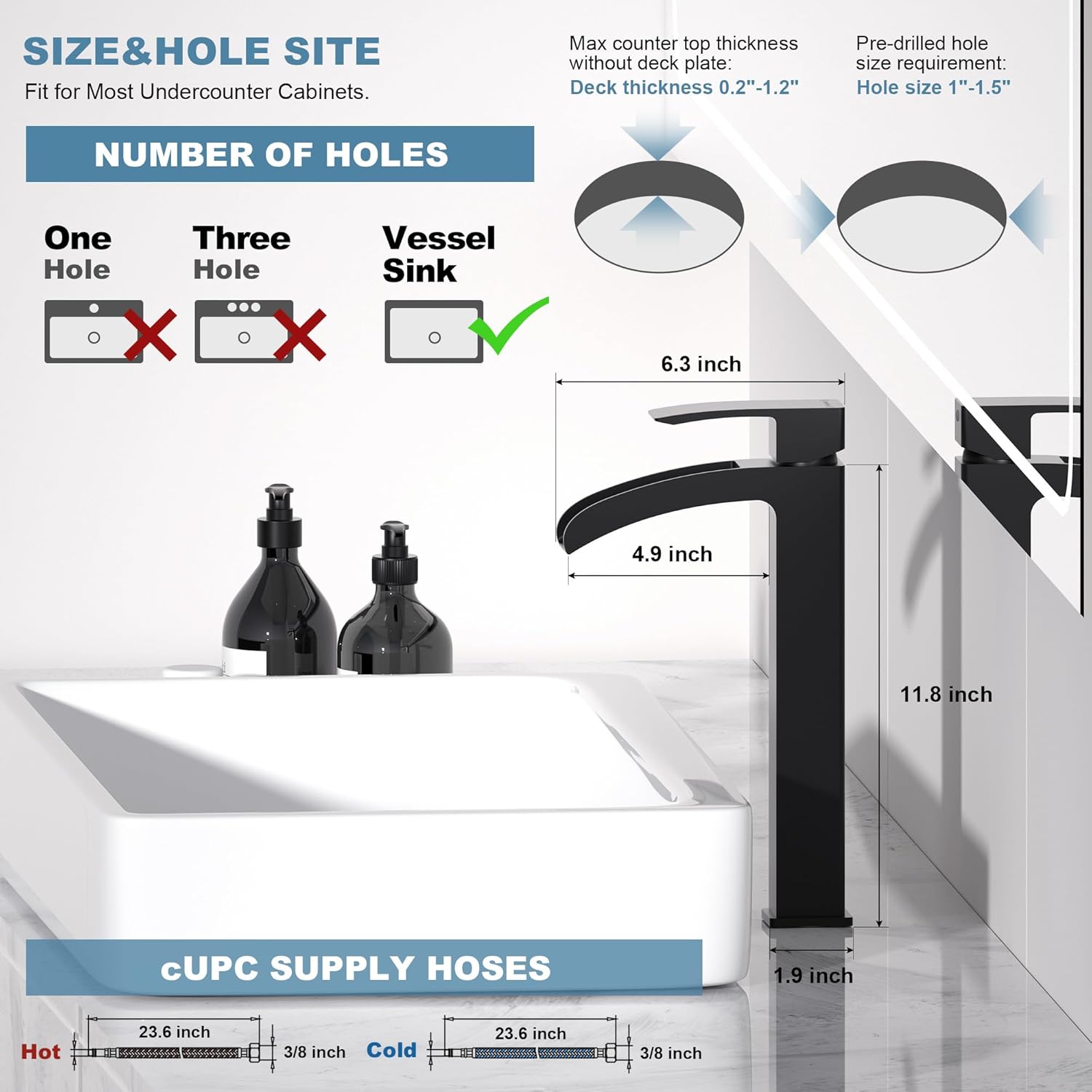 - 【Complete Set of Accessories Included】 This faucet comes with a pop-up drain stopper and water supply hoses, providing all the necessary components for a seamless installation, eliminating the need for additional purchases.