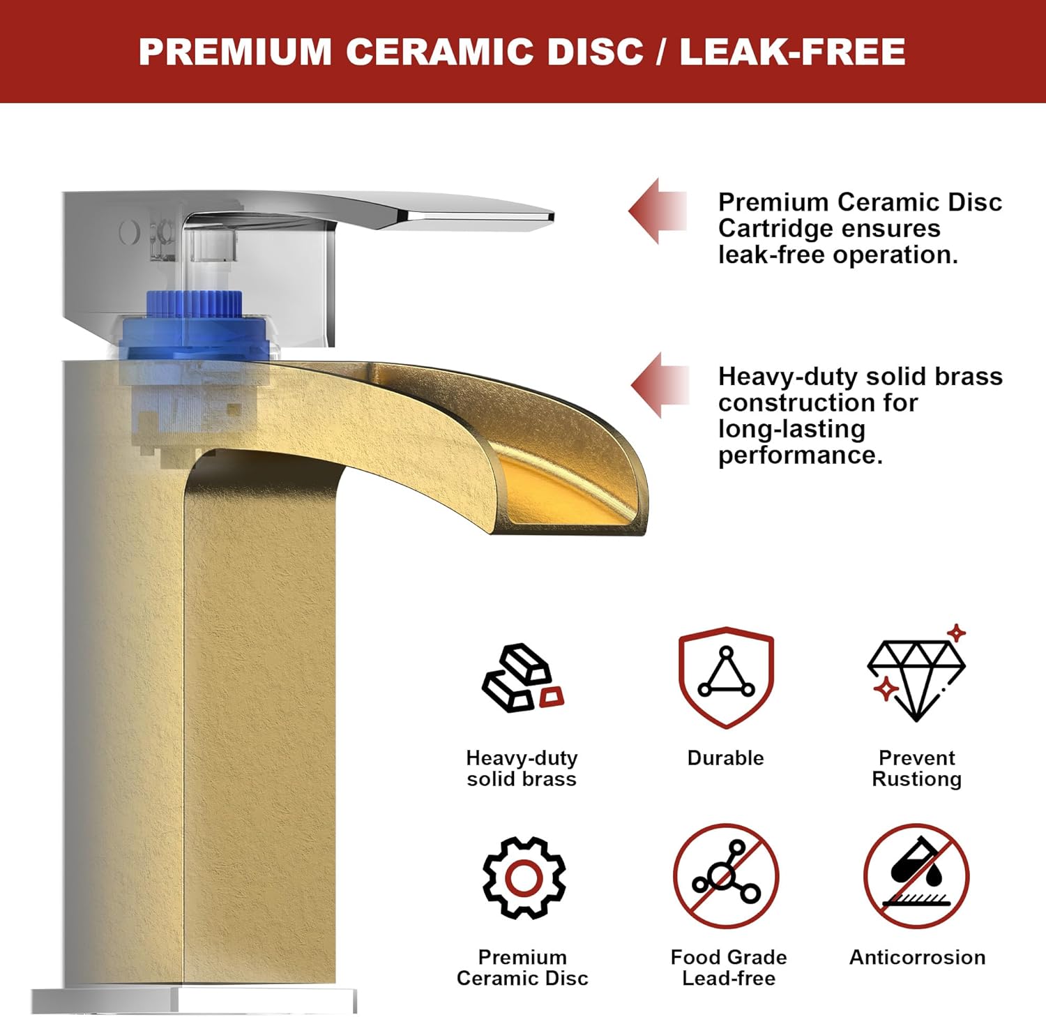 - Premium Quality for Decades: Heavy-duty metal construction ensures the waterfall faucet remains looking new and free from rust and corrosion over time, preserving its original shine and finish. This not only enhances the bathroom’s aesthetic appeal but also contributes to a clean and modern look that can impress guests and elevate the overall ambiance of the space.