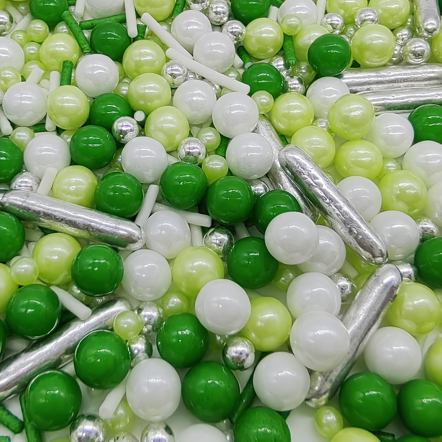 Green Series Sprinkles Candy Mix Size Edible Pearls Cake Decorations Cupcake Toppers Cookie Decorating Perfect for Wedding Party Valentine Halloween Christmas Supplies 4.58OZ