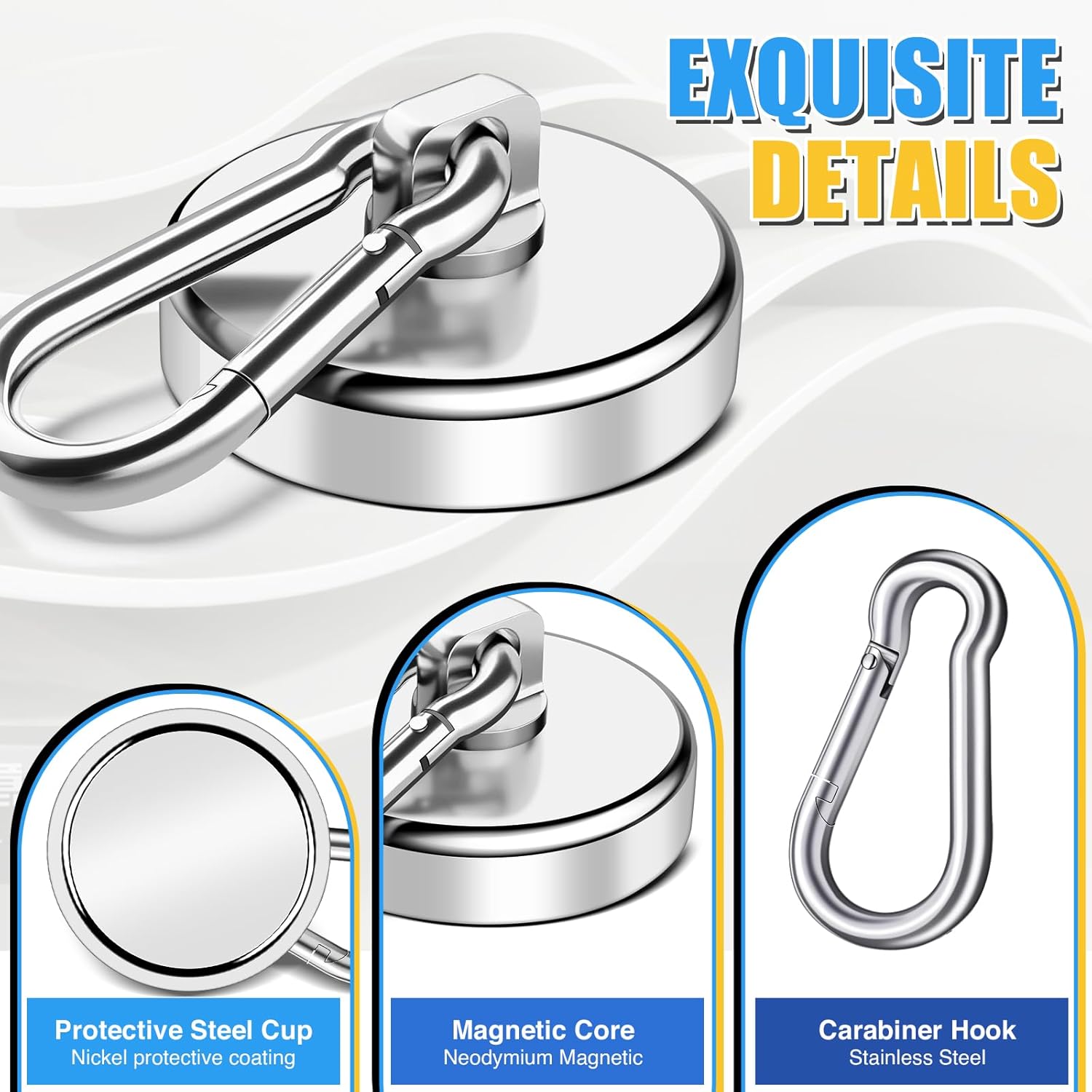 200Lbs Magnetic Carabiner Hooks, 2 Pack Strong Magnetic Hooks Heavy Duty with Swivel Carabiner for Cruise, Black Neodymium Magnet Hooks Magnetic Wall Hanger for Hanging, Toolbox, Grill, Cabins