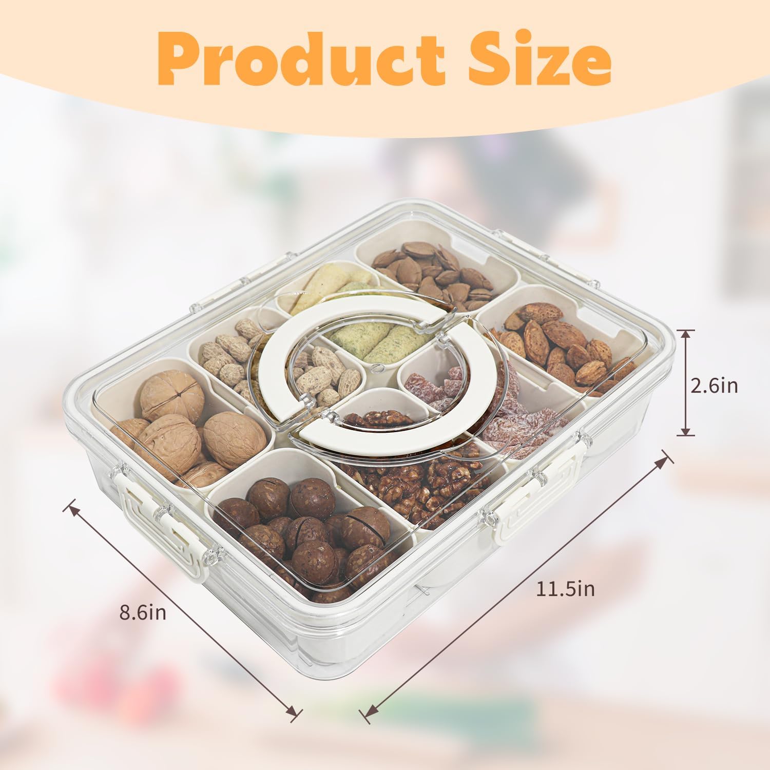 - 【8 Independent Partitions】 The snack box with compartments has 8 removable dividers with a capacity of 480 ml each and a total capacity of 3840 ml, perfect for storing snacks, fruits, spices, nuts and other snacks.