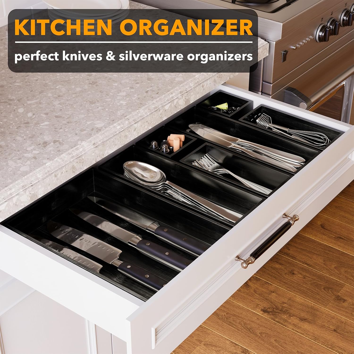 - EASY TO FIND IN DRAWER - Identify drawer contents instantly with this multi-functional kitchen wood drawer organizer set; You can use them as a nightstand or vanity organizer to keep your items tidy