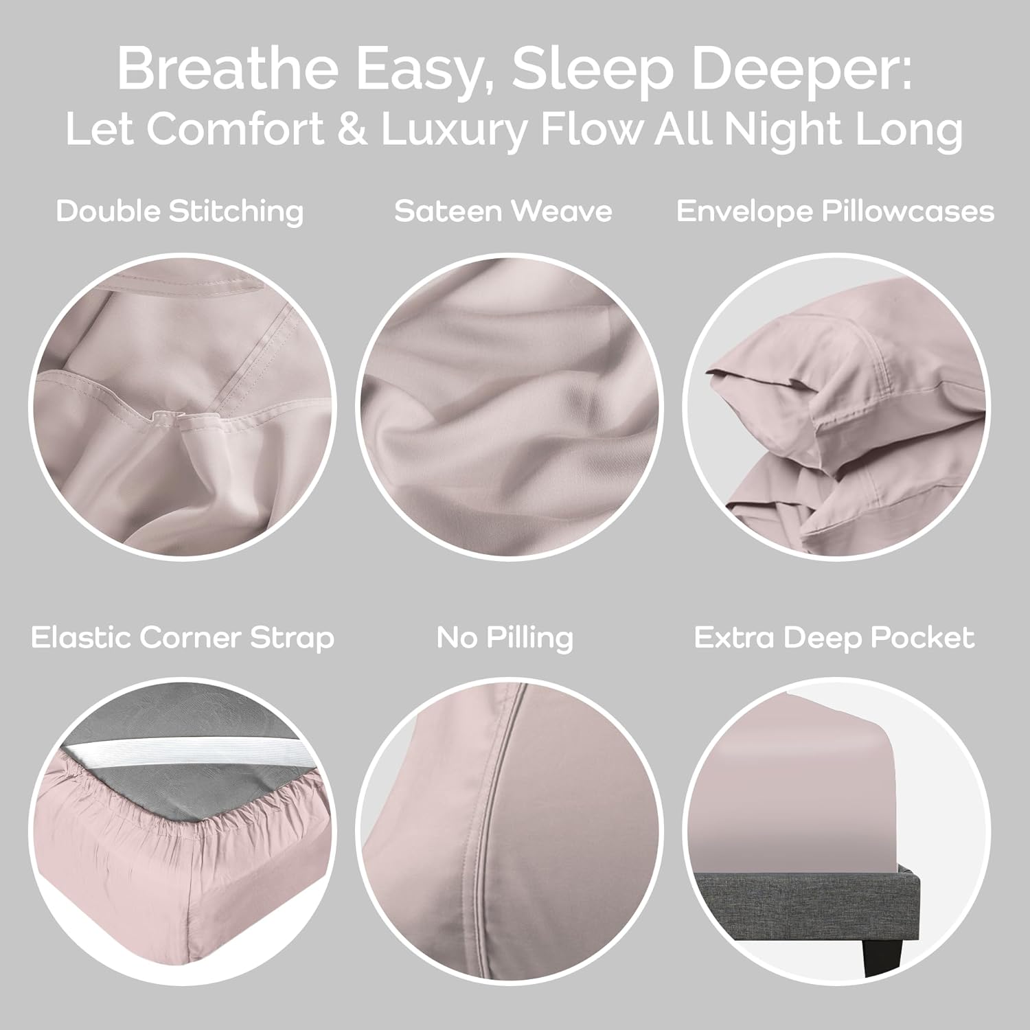 - Tired of Waking Up to Messy Bedsheets? Our cooling fitted sheet queen with corner elastic straps features an 18" extra deep pocket queen sheets design, perfect for your queen mattresses, while our envelope closure pillowcases keep queen pillows securely in place.