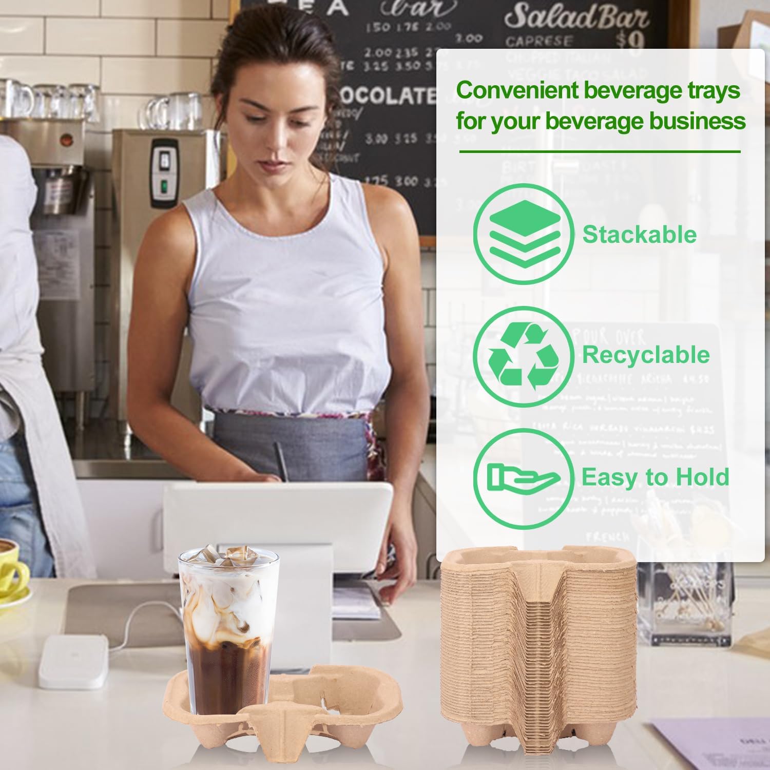 100 Pack Eco-Friendly Two Cup Drink Carrier, Disposable Cup Holder Tray for Your Beverage Needs? to Go Cup Holder for Hot and Cold Drinks by IHDYPPEW