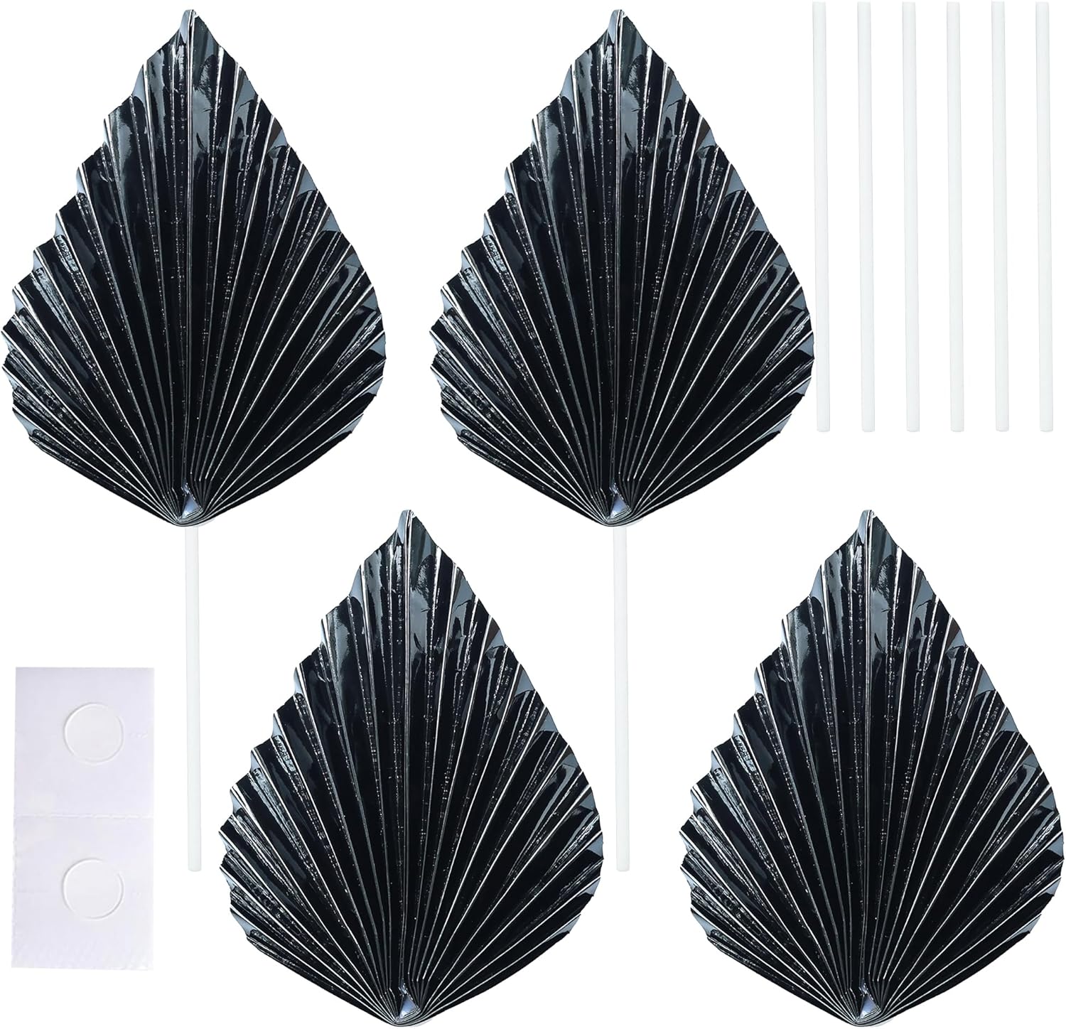 Gyufise 6Pcs Paper Palm Fan Cake Toppers Palm Spear Leaves Fan Cupcake Toppers Cake Insert Decorations Craft DIY Cake Bakeware Decoration for Birthday Party Wedding Party Decor Supplies Light Black