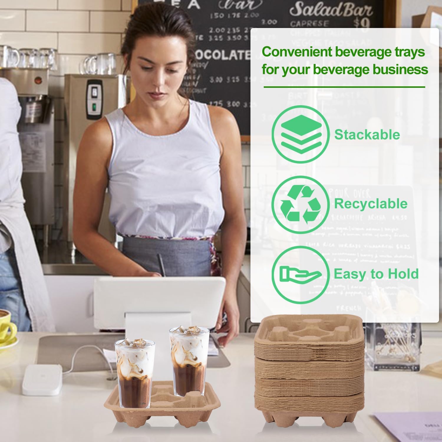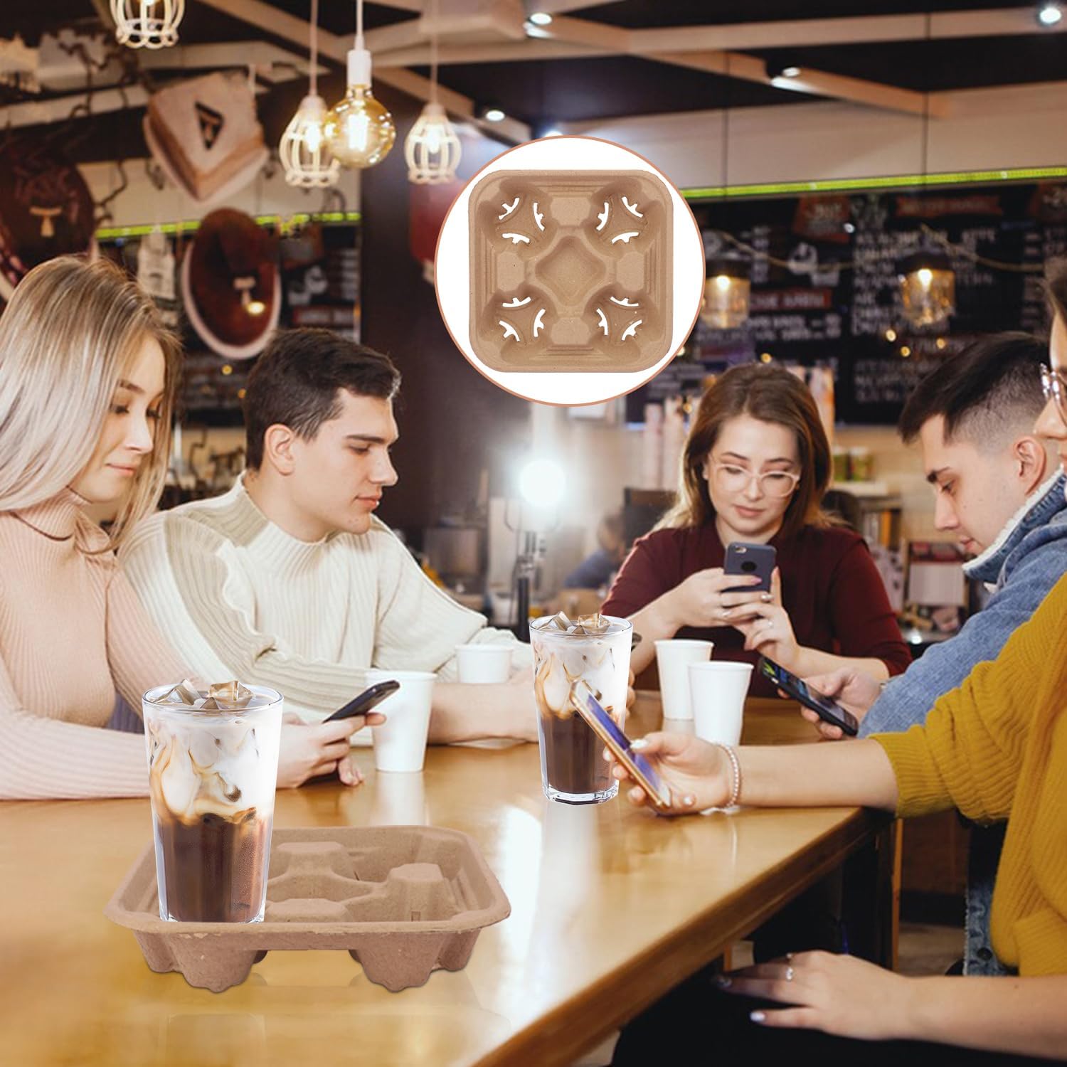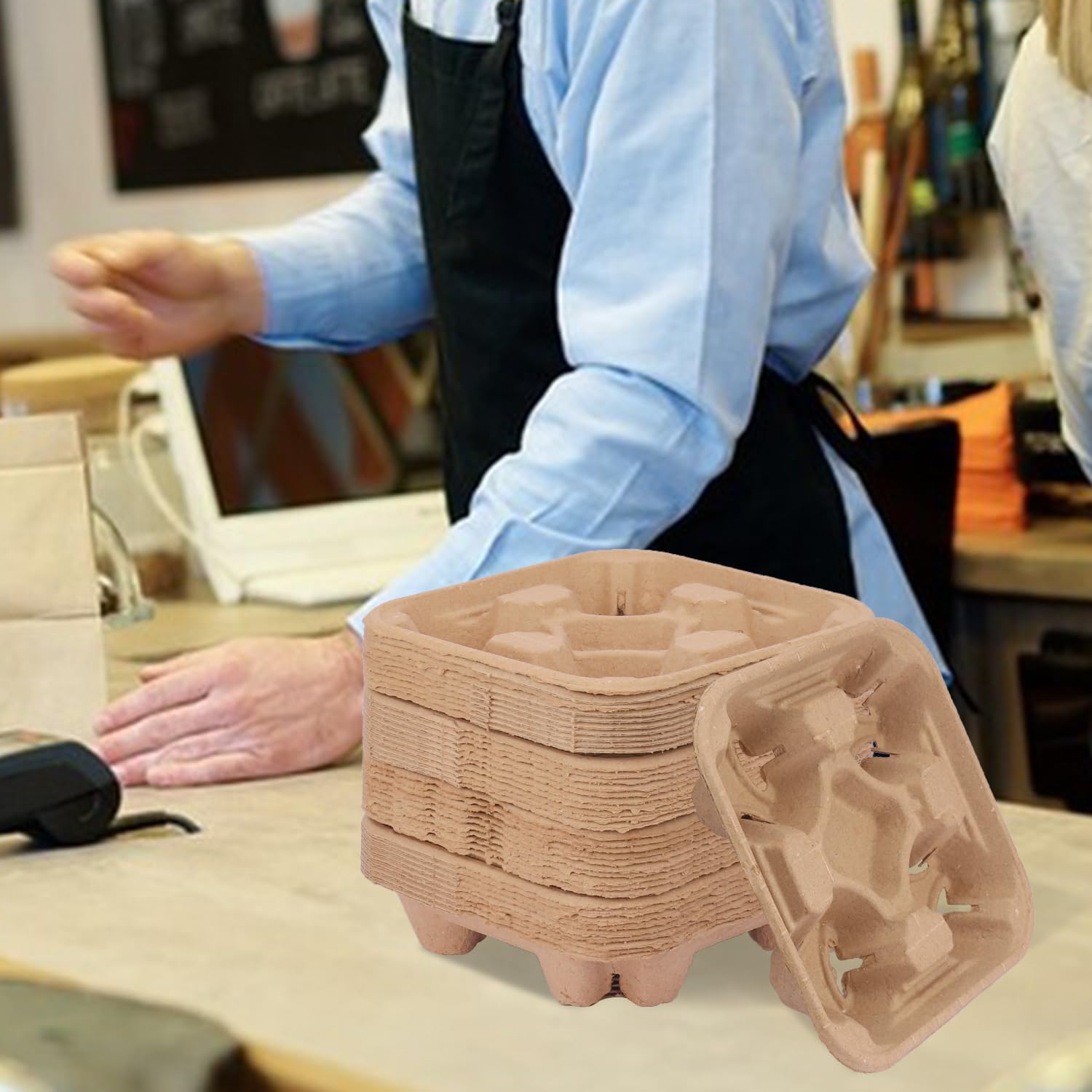 - 【 Durable and Sustainable】 Crafted from and recyclable molded pulp fibers, our cup carriers are sturdy and durable. Enjoy your drinks.