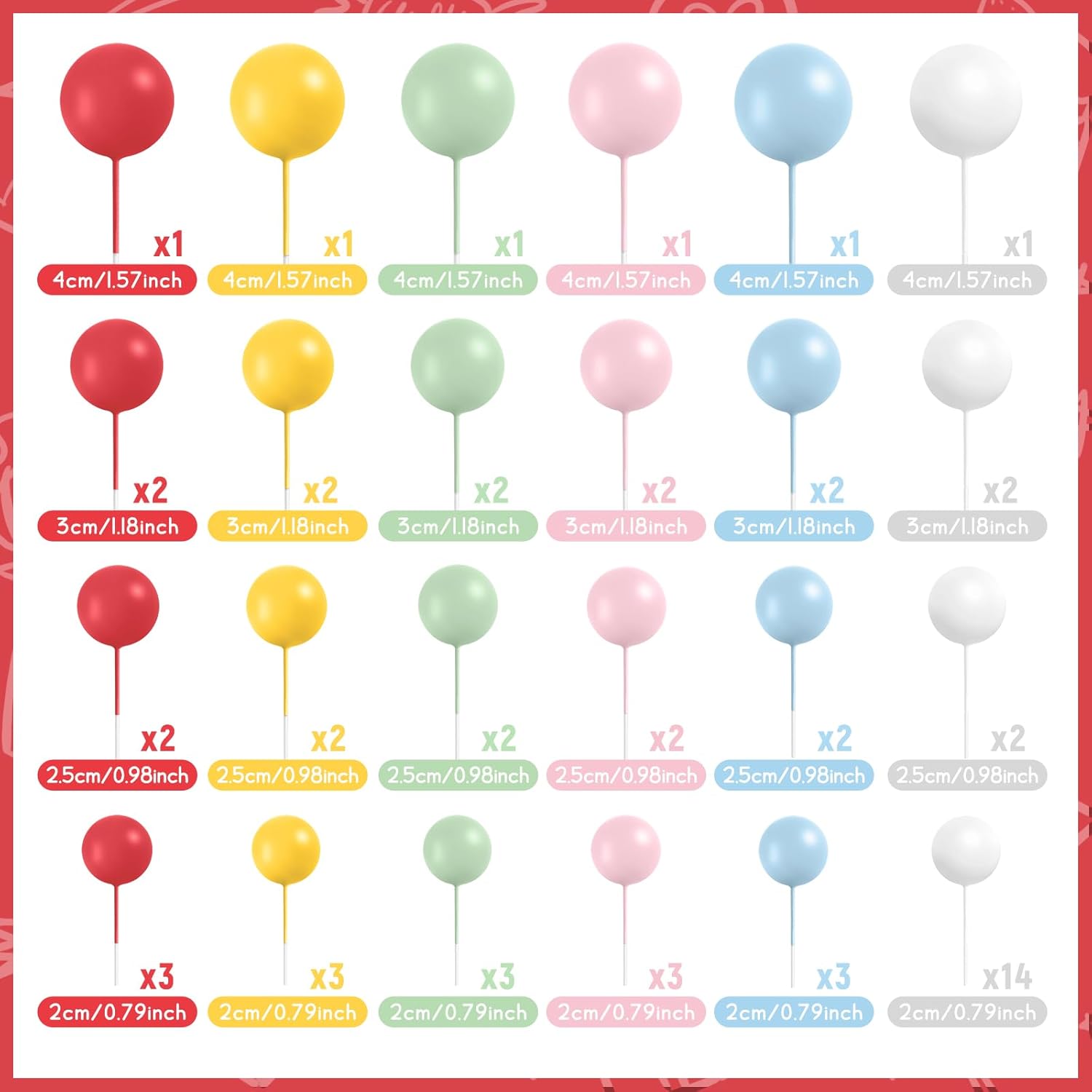 48 Pcs Balls Cake Topper Decorations Balloon Cupcake Toppers Foam Cake Topper Balls Cake Balls Decorations for Birthday Party Wedding Cake Decorating(Red,Yellow,Green,Pink,Blue,White)