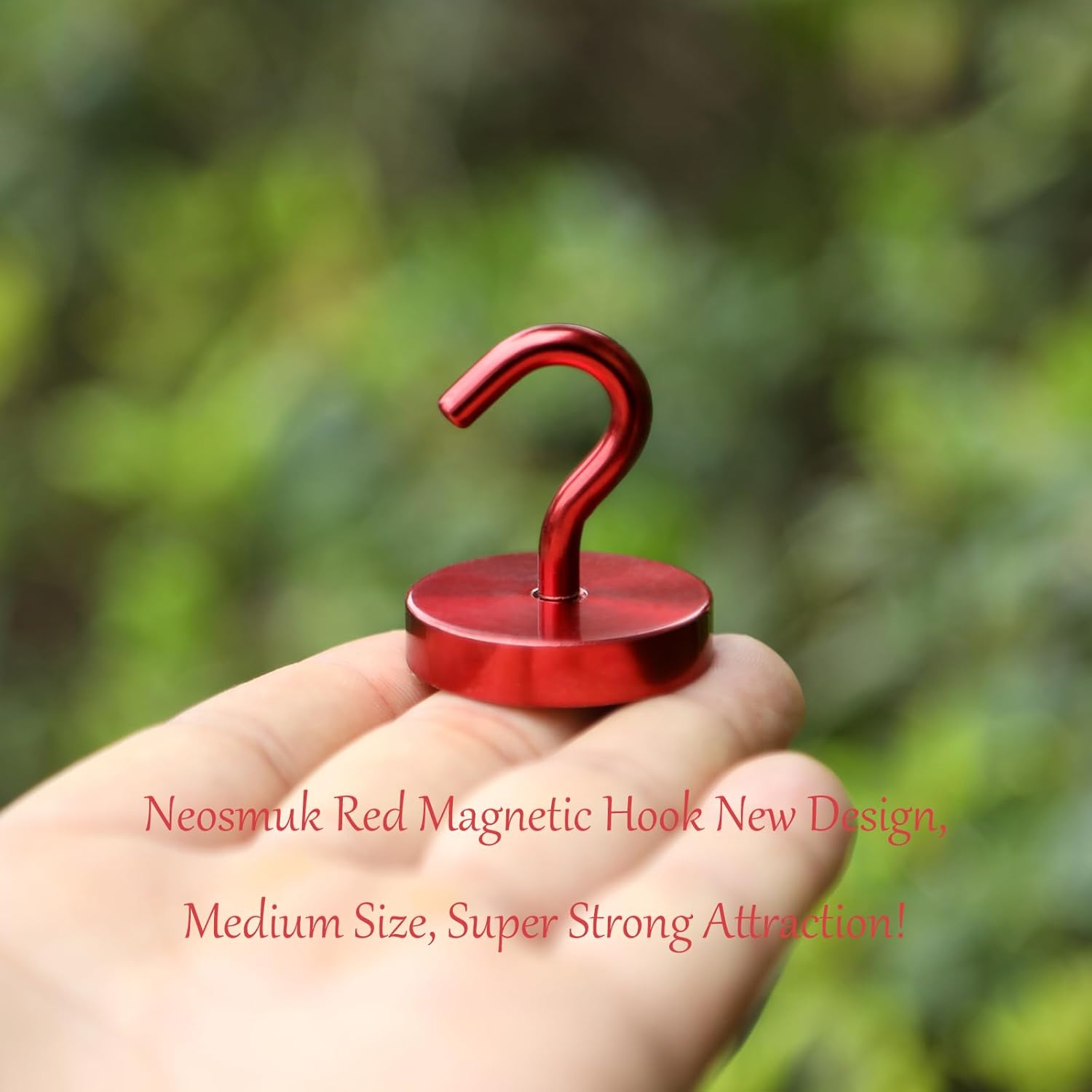 Neosmuk Magnetic Hooks, Cruise Ship Essentials, 120lb+ Heavy Duty Magnetic Hooks for Cruise Cabins, Refrigerator, Grill, Hanging, and Travel | Extra Strong Must-Haves Magnet Hook,Red, Pack of 10