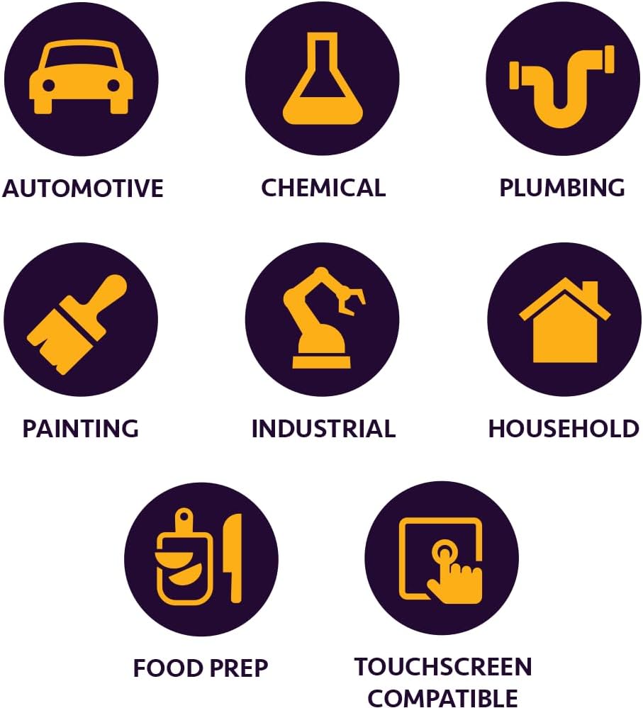 - Multipurpose & touchscreen friendly: Designed for versatility—perfect disposable gloves for food handling, cleaning, automotive work, and more. Textured fingertips ensure a secure grip, while touchscreen compatibility adds modern convenience. Latex-free for reduced risk of allergic reactions.