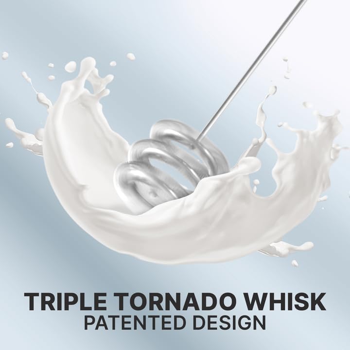 Zulay Kitchen Milk Frother with Patented Tornado Triple Whisk – Handheld Foam Maker for Coffee, Lattes, Matcha & Hot Chocolate – Rich, Creamy Froth in Seconds -