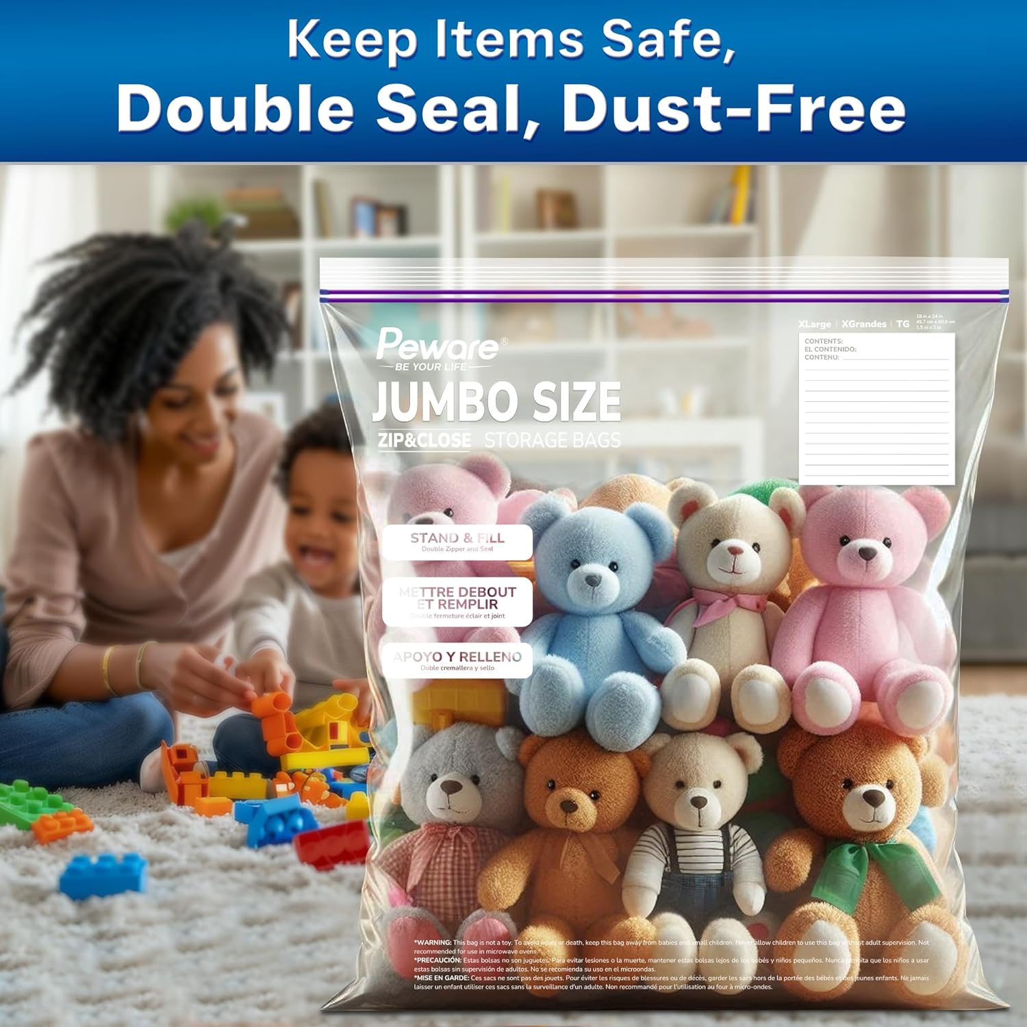 Large Storage Bags, 18"x24" Jumbo Plastic Bag, BPA Free, 5 Gallon XL Zipper Lock Baggies for Clothes Pillow Travel Moving - 15 Jumbo Bags