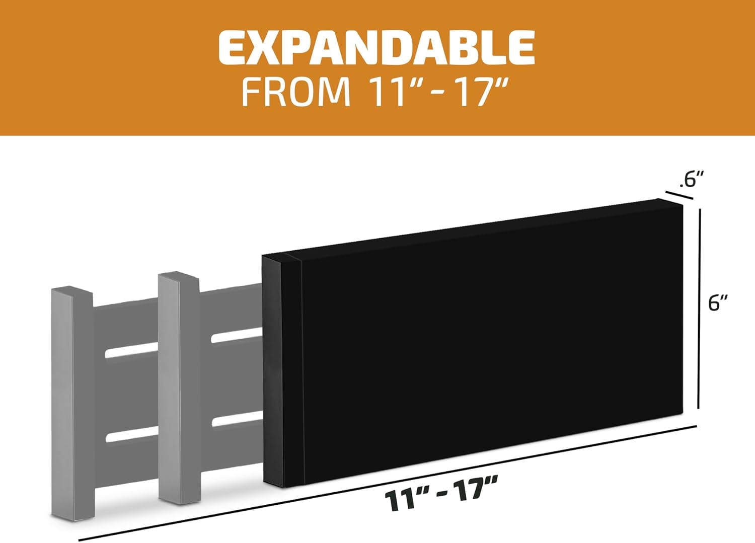 - EXPANDABLE & ADJUSTABLE UTENSIL ORGANIZER - Our storage drawer organizer fits almost any drawer in your house because the length expands from 11 - 17”. The beauty of the utensil drawer organizer isn’t only in the expandable length, but that they can be stacked in deeper drawers. (Each is 6” deep.)