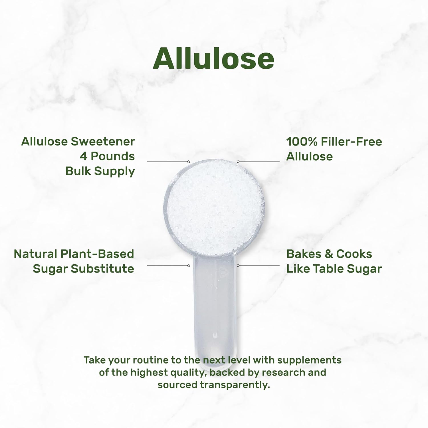 - Dosage & Servings – Enjoy a 4-pound supply in which each scoop provides 4g of authentic allulose and offers 453 total servings. A 0 net carb, 0 sugar, and 0 calorie all-purpose blend.