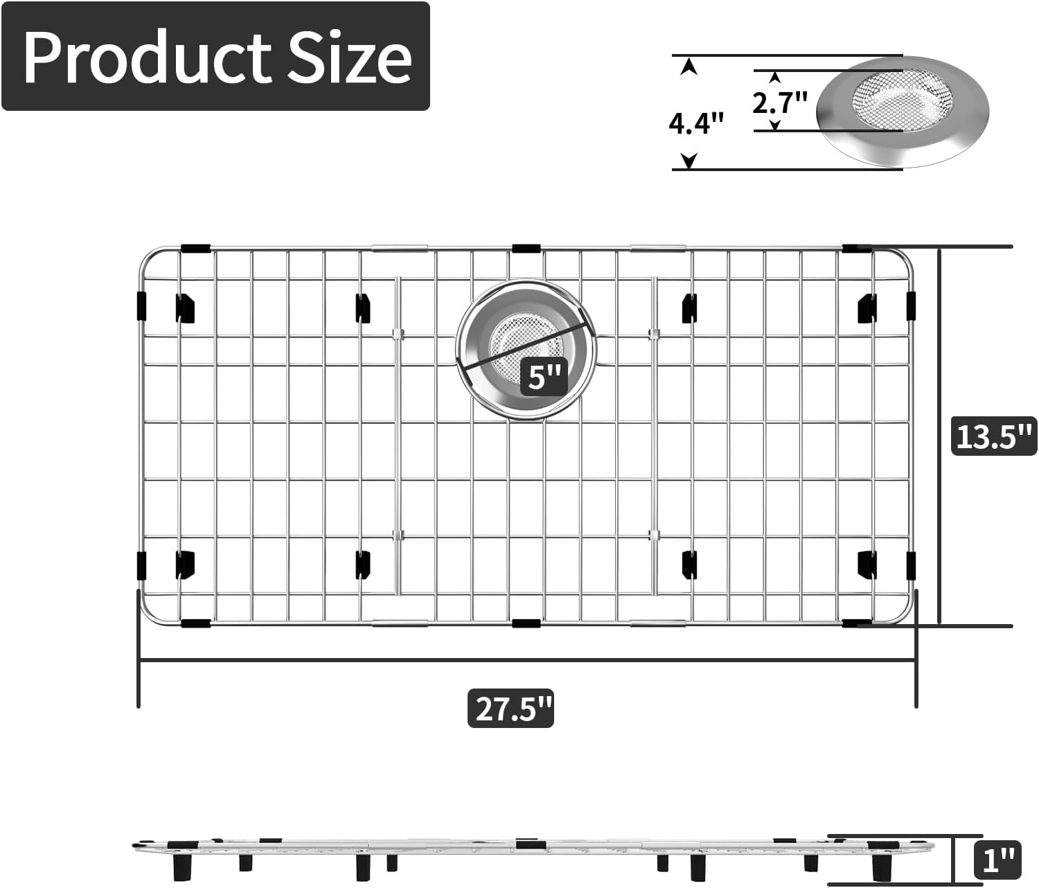 - Product Size: 27.5"x 13.5". Measure 1" from the bottom of the sink". The length and width should be smaller 1/2” than the size of the sink