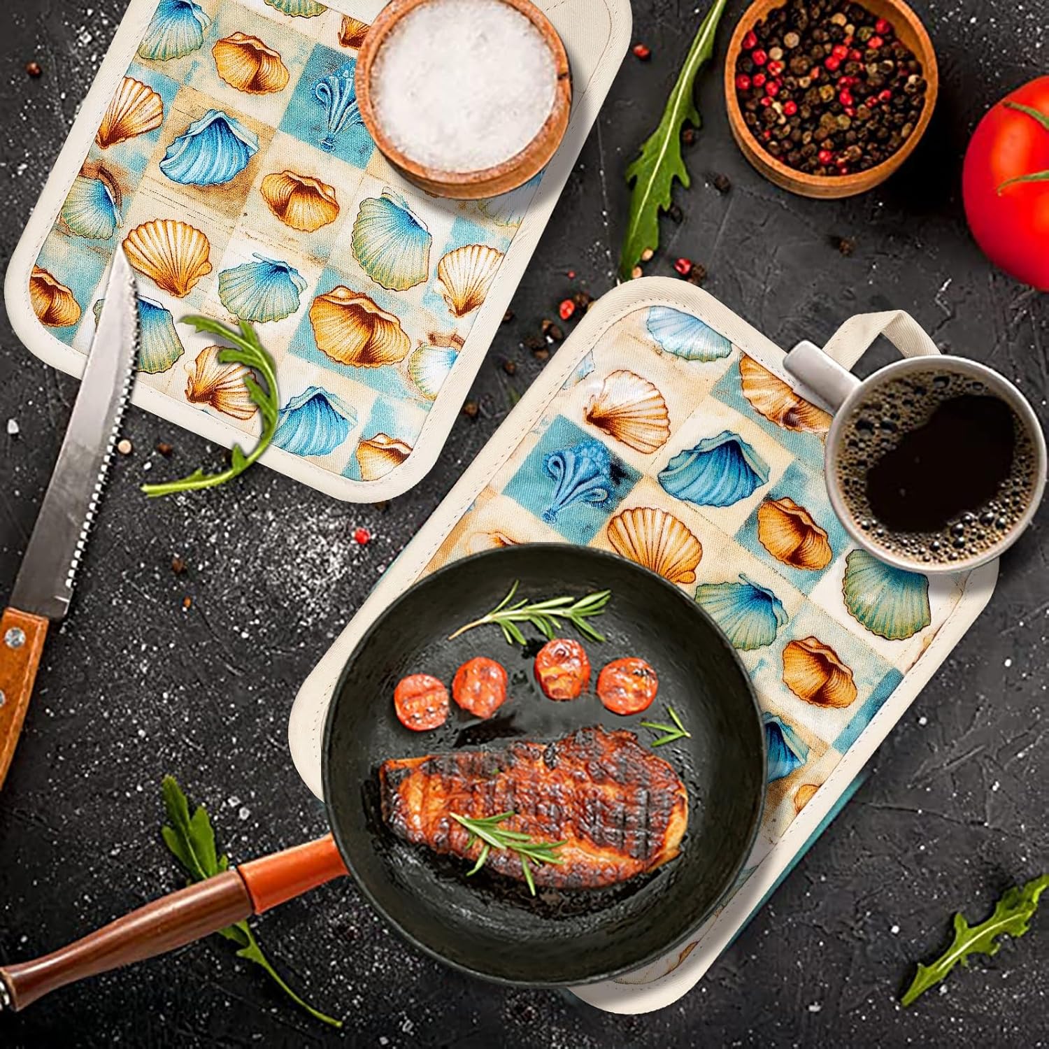 - Color : Shell, Beige Potholders