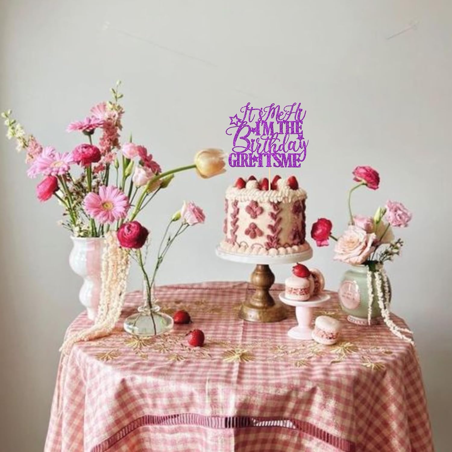 1 PCS It's Me Hi I'm the Birthday Girl It's Me Cake Topper Glitter Music Singer Cake Pick for Funny Hip Hop Singer Girls Birthday Party Cake Decorations Supplies Purple