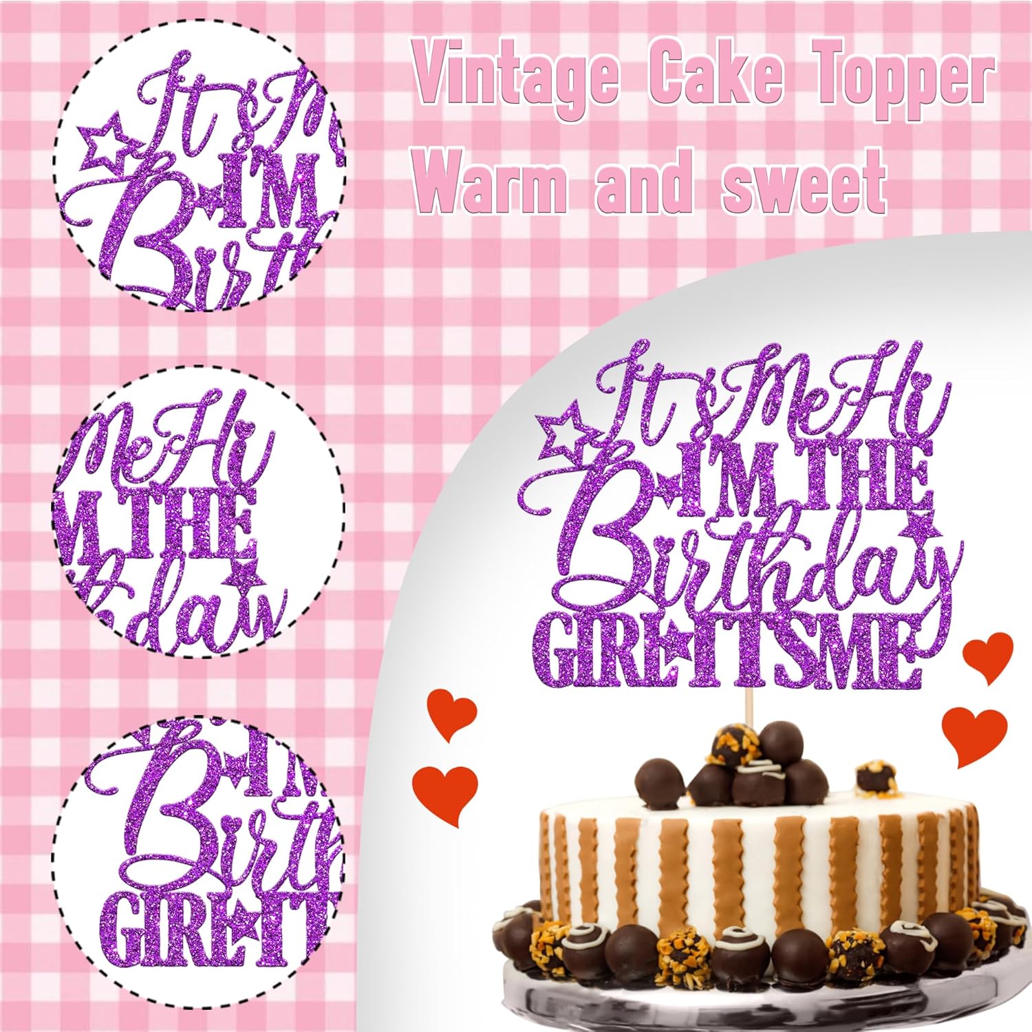 - Wide Usages ! The cake topper is perfect for lt's me hi l'm the birthday girl lt's me theme party, music singer theme party, hip hop singer theme party, funny girls birthday theme party cake decorations, they can make your cake more attractive and bring the fun to your party.You can also apply them for ice cream, fruits, cookies and other desserts.