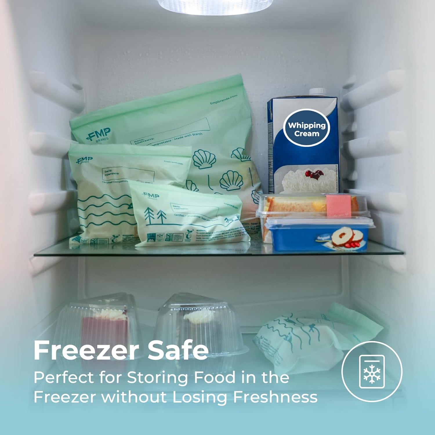 Fit Meal Prep 100% Compostable Food Storage Bags Set, Resealable Bags Plant-Based Freezer Bag for Food, ASTM D6400, US BPI & EU OK Compost Certified