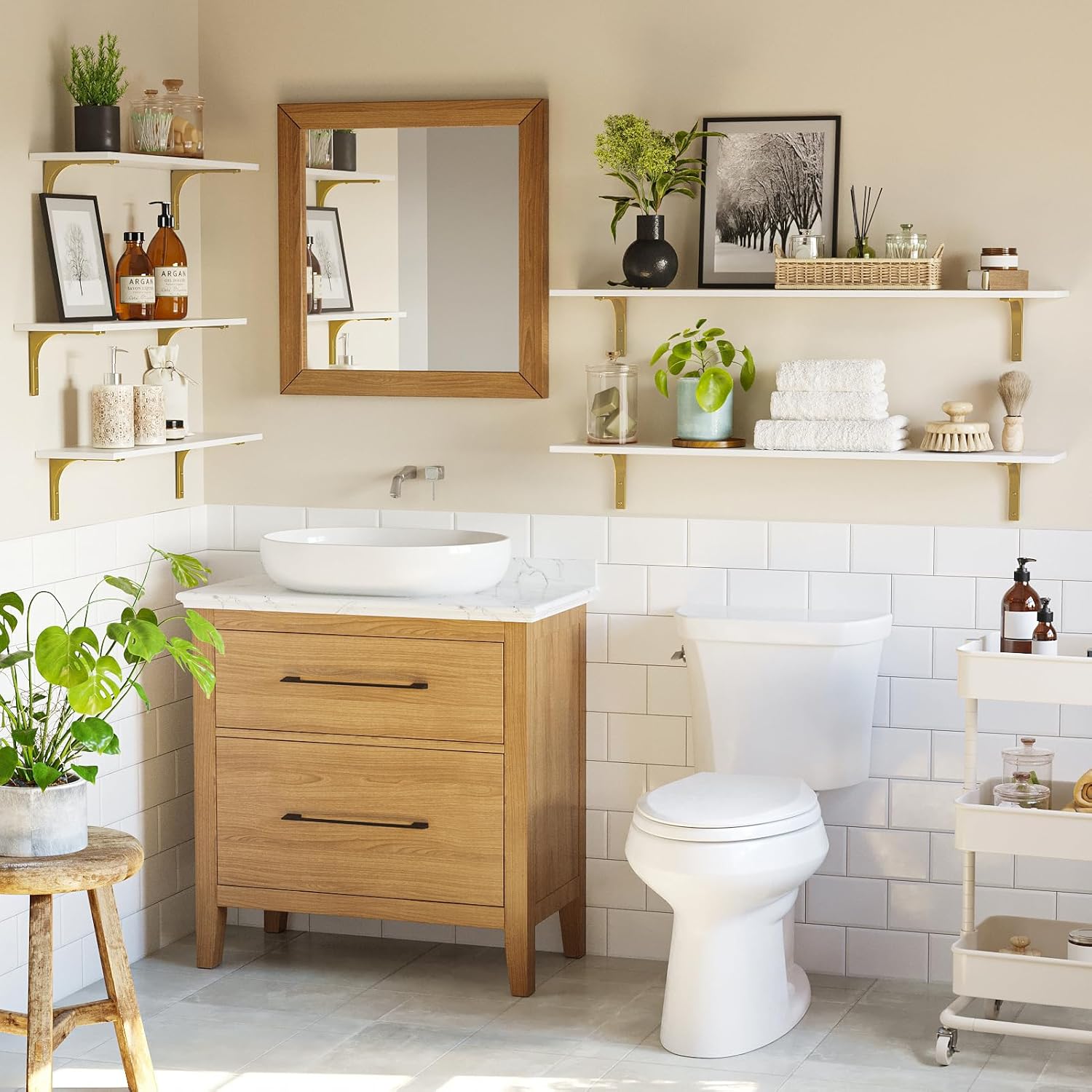 DINZI LVJ Long Wall Shelves, 31.5" Wall Mounted Shelves Set of 4, Large Floating Shelves with Metal Brackets, for Living Room, Bathroom, Bedroom, Kitchen, White and Gold