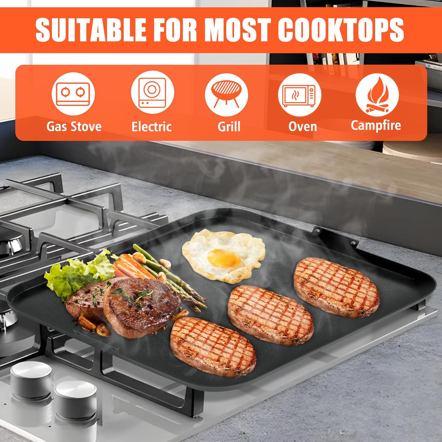 - EXCELLENT NON-STICK PERFORMANCE: The stove top griddle is coated with food-grade non-stick coating and is PFOA, BPA and PTFE free. It ensures food comes out of the pan effortlessly and makes cleaning a breeze, so say goodbye to sticking