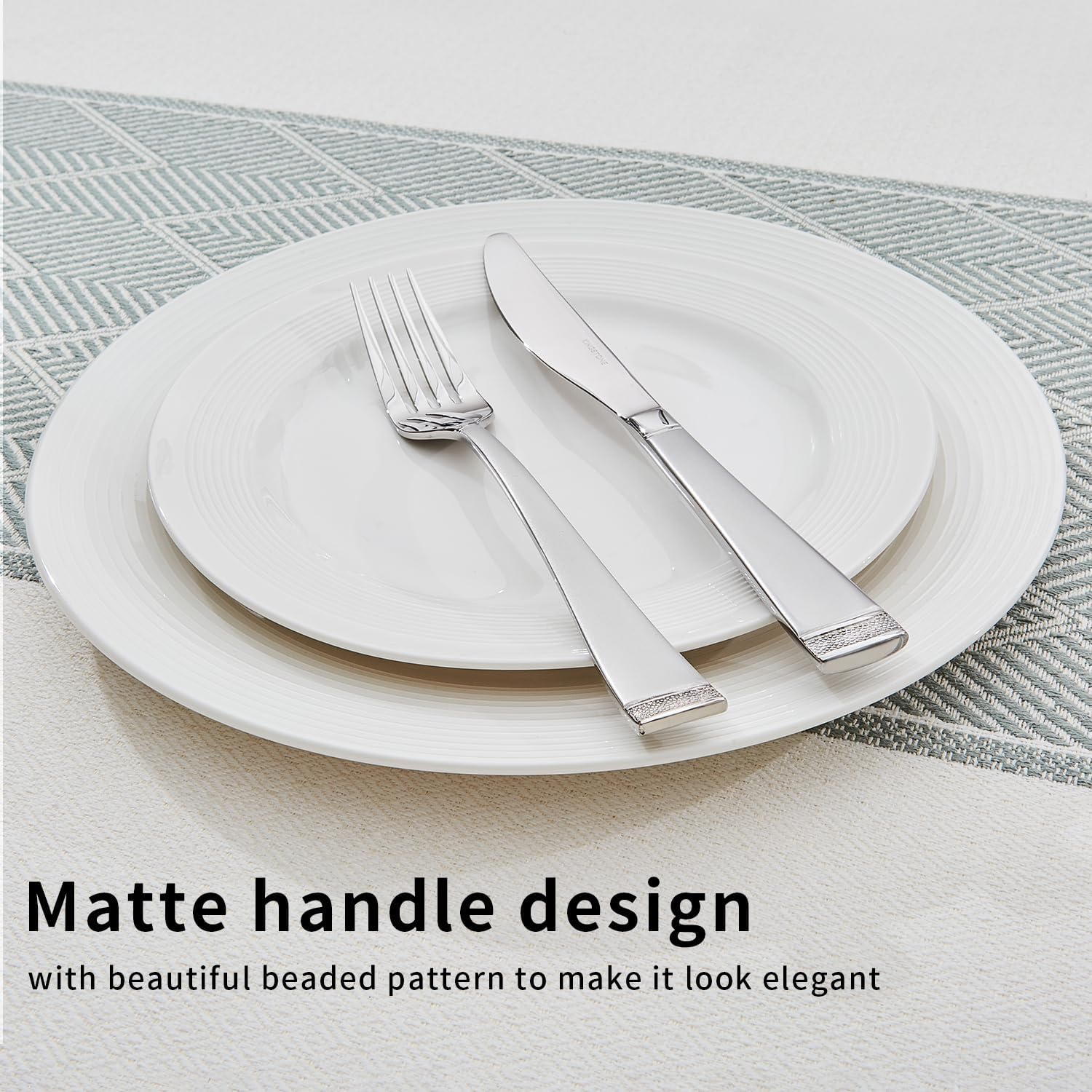 - BEADED HANDLE DESIGN: The flatware set has a beaded design at the end of the handle, which has slim lines that bring elegance. The beaded edges make the table setting more special.
