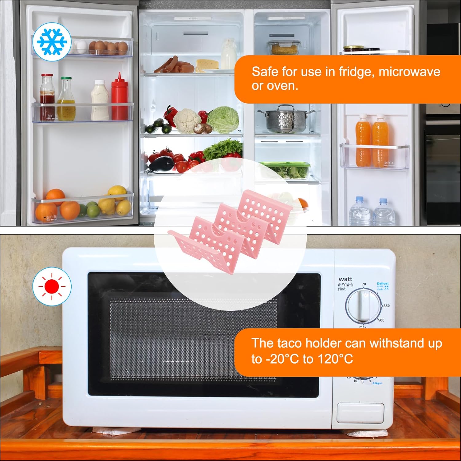 - [Design] - Small holes even distribution on taco stands make taco heat up evenly. The curved design prevents the taco from getting wet or falling off.