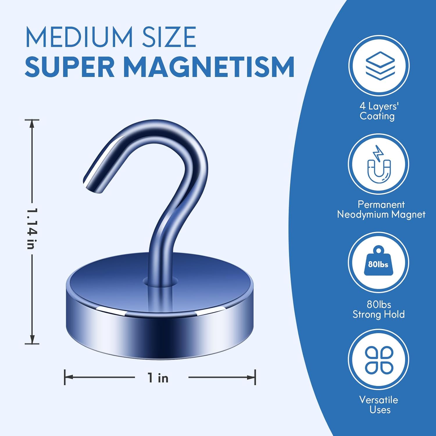 - ✔ VERSATILE USE- Neosmuk’s strong neodymium magnetic hooks were endowed with a strong capability for holding various items wherever there is iron or steel. This magnet hook is a perfect magnetic key holder. You can also hang your tools next to the toolbox with this magnetic hook. Our magnetic hooks are great for grill, pot, cup, utensils, and oven.
