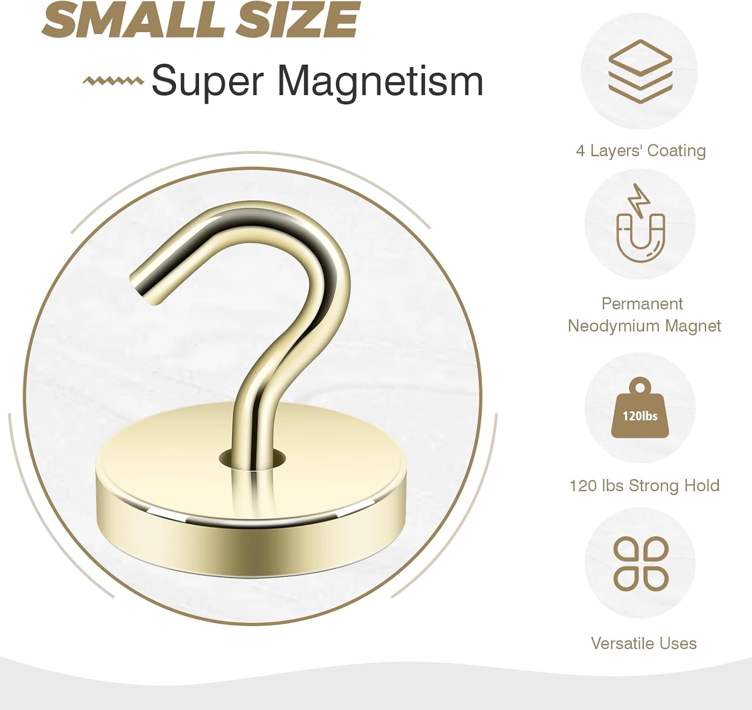 Neosmuk Magnetic Hooks, Cruise Ship Essentials, 120lb+ Heavy Duty Magnetic Hooks for Cruise Cabins, Refrigerator, Grill, Hanging, and Travel | Extra Strong Must-Haves Magnet Hook,Gold,Pack of 10