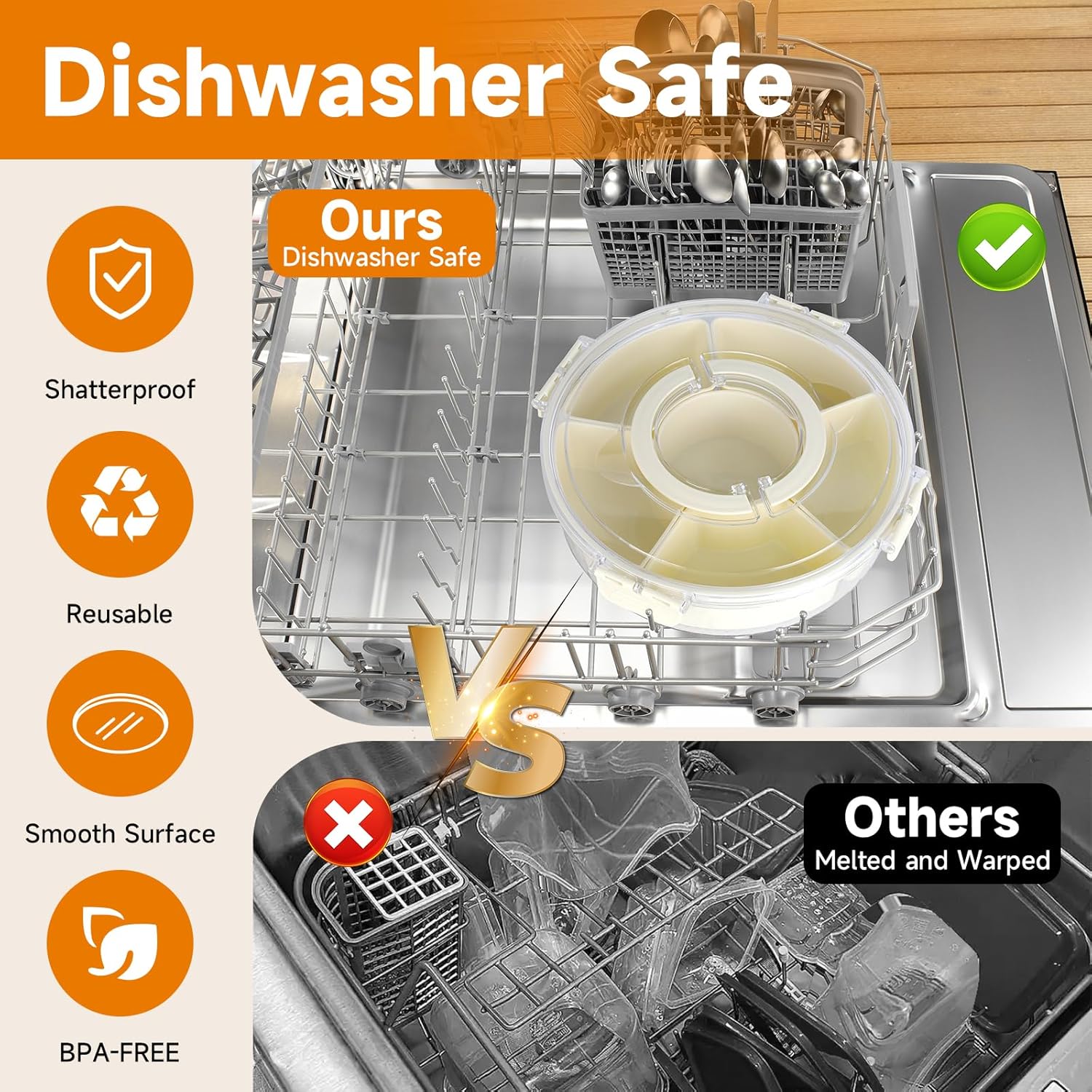 - Portable and Convenient: With a clear lid and built-in handle, this snack spinner is perfect for indoor/outdoor entertaining, parties, picnics, and travel