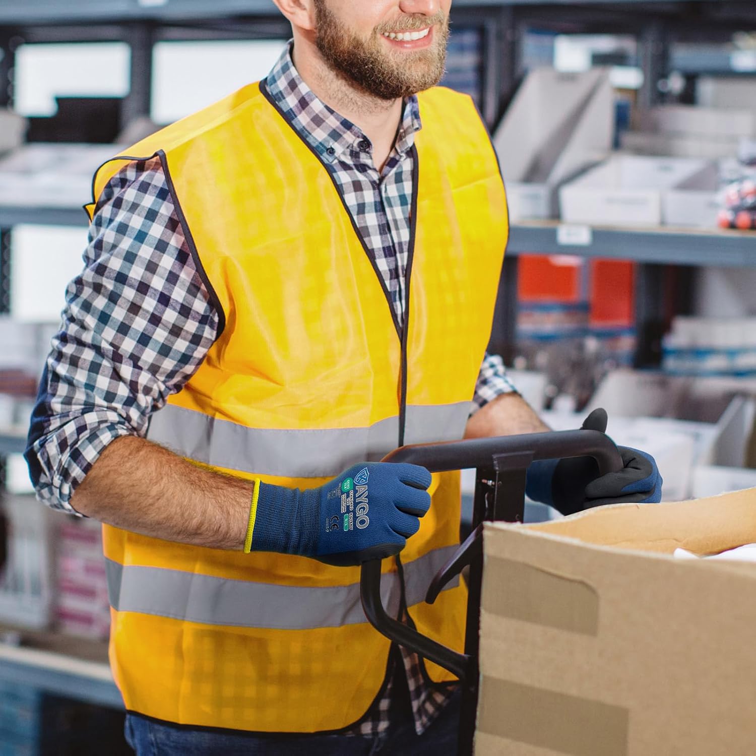 KAYGO Safety Work Gloves MicroFoam Nitrile Coated-12 Pairs, KG18NB,Seamless Knit Nylon Glove with Black Micro-Foam Nitrile Grip,Ideal for General Purpose,Automotive,Home Improvement, Dark Blue, L